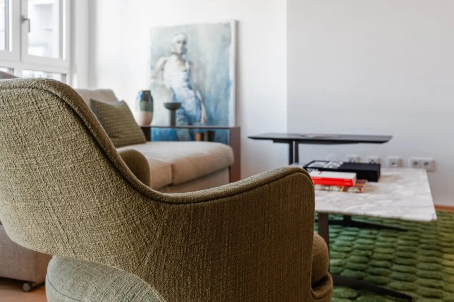 Das Erdgeschoss wird gewerblich genutzt. In den darüberliegenden Geschoßen befinden sich hochwertige Eigentumswohnungen.