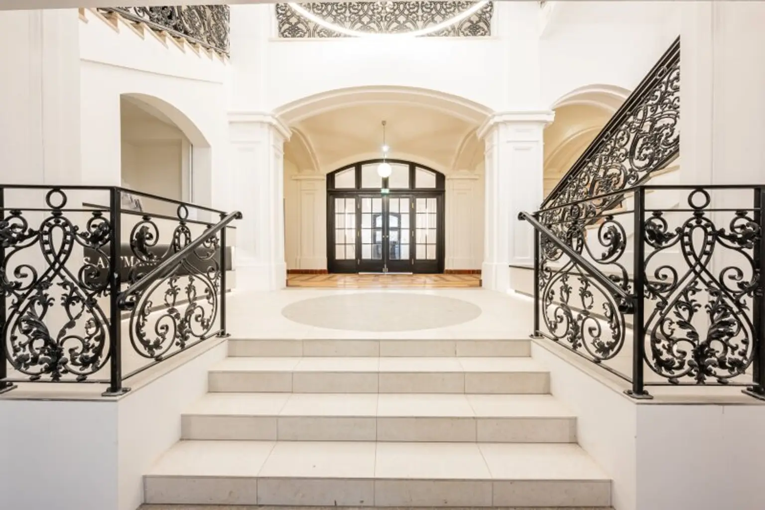 The imposing brick building (the façade and staircase are listed as historical monuments) erected by Ferdinand Artmann in 1866 and the courtyard extension built later were extensively renovated by 2025.