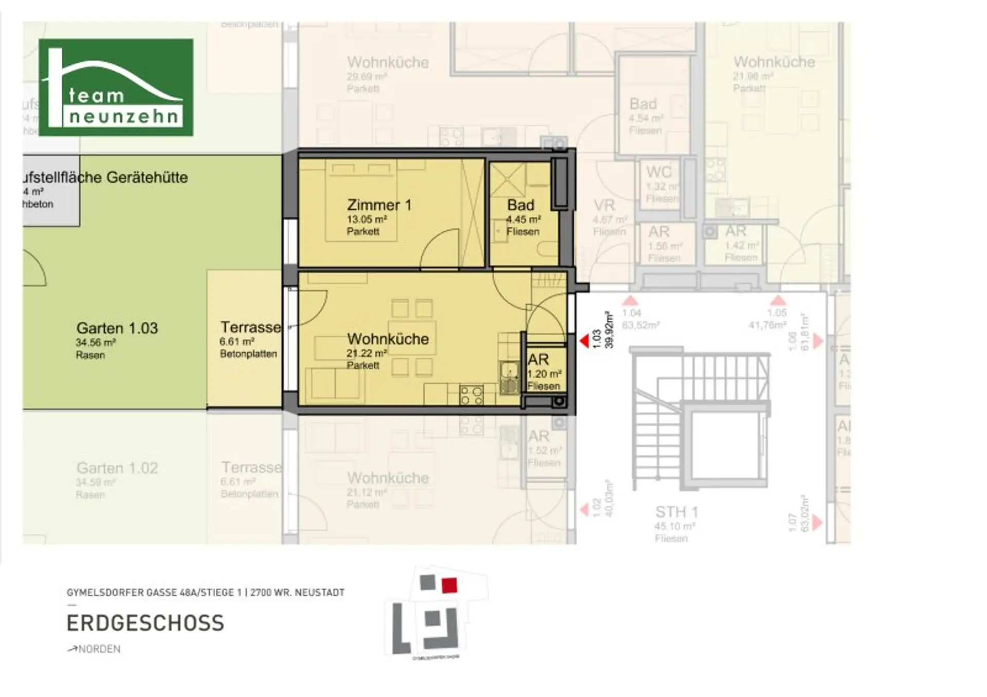 Es handelt sich hier um eine familienfreundliche und ruhige Siedlung. Die Wohnhausanlage besticht nicht nur durch die ideale Lage zum Stadtzentrum Wr. Neustadt, sondern auch durch den hohen Anspruch an Design und Architektur. So wurde eine Augenmerk auf den kompakten und gut geschnittenen Grundrissplan gelegt.