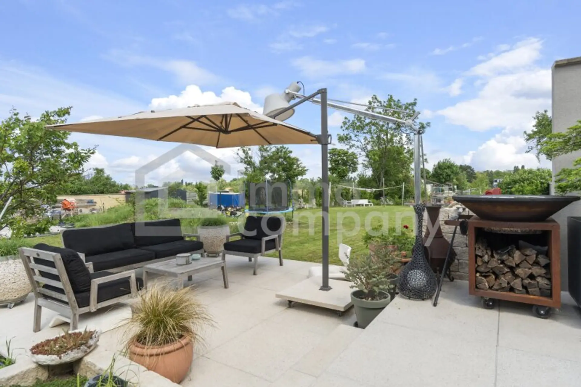 IM GARTEN erwartet Sie nicht nur eine große gemütliche Terrasse mit eigenem Loungebereich sondern auch eine nette Feuerstelle mit Sitzgelegenheit sowie eine geräumige Biohorthütte.