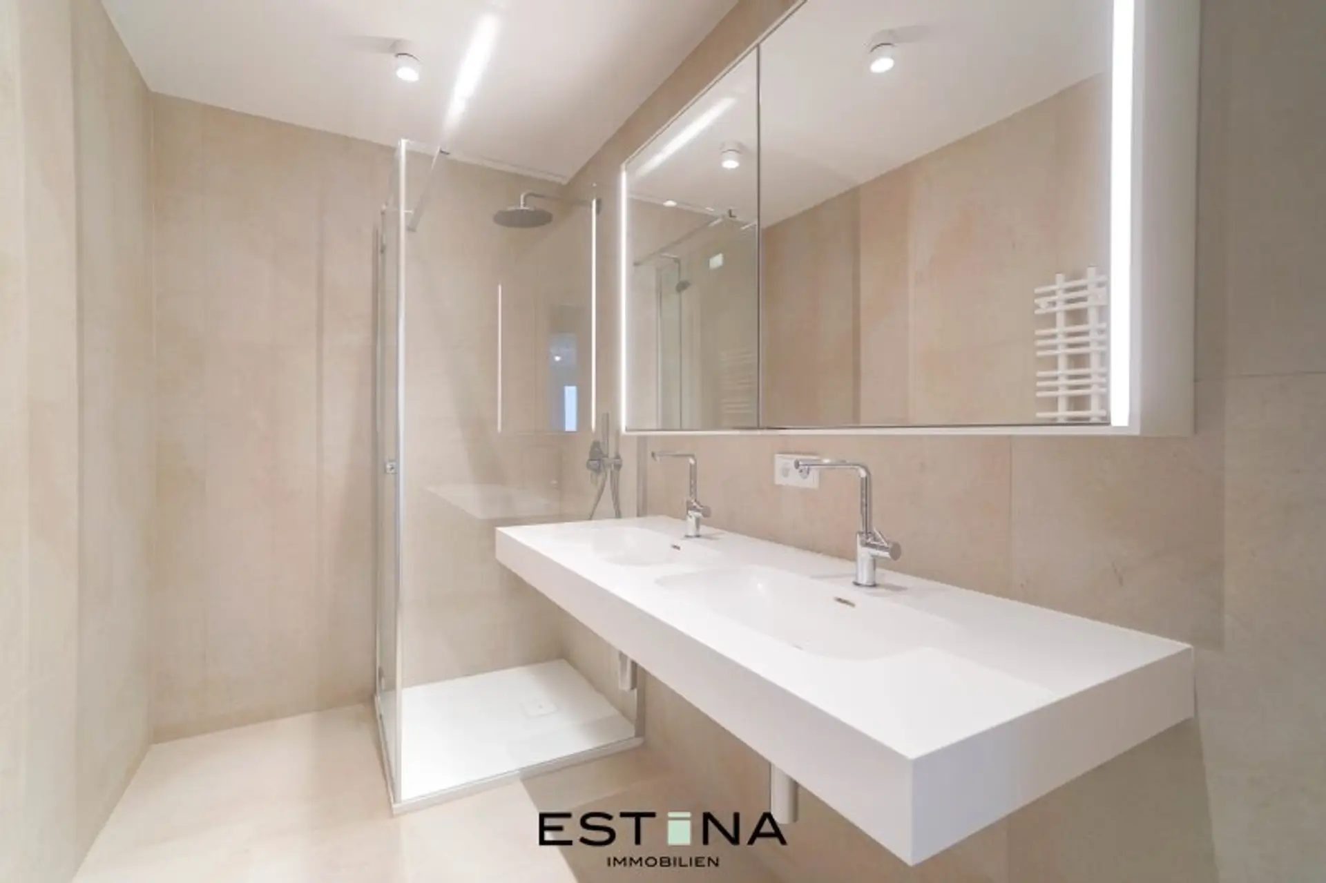 - 2 Badezimmer eins mit Badewanne, eins mit Walk-In Dusche und Doppelwaschbecken