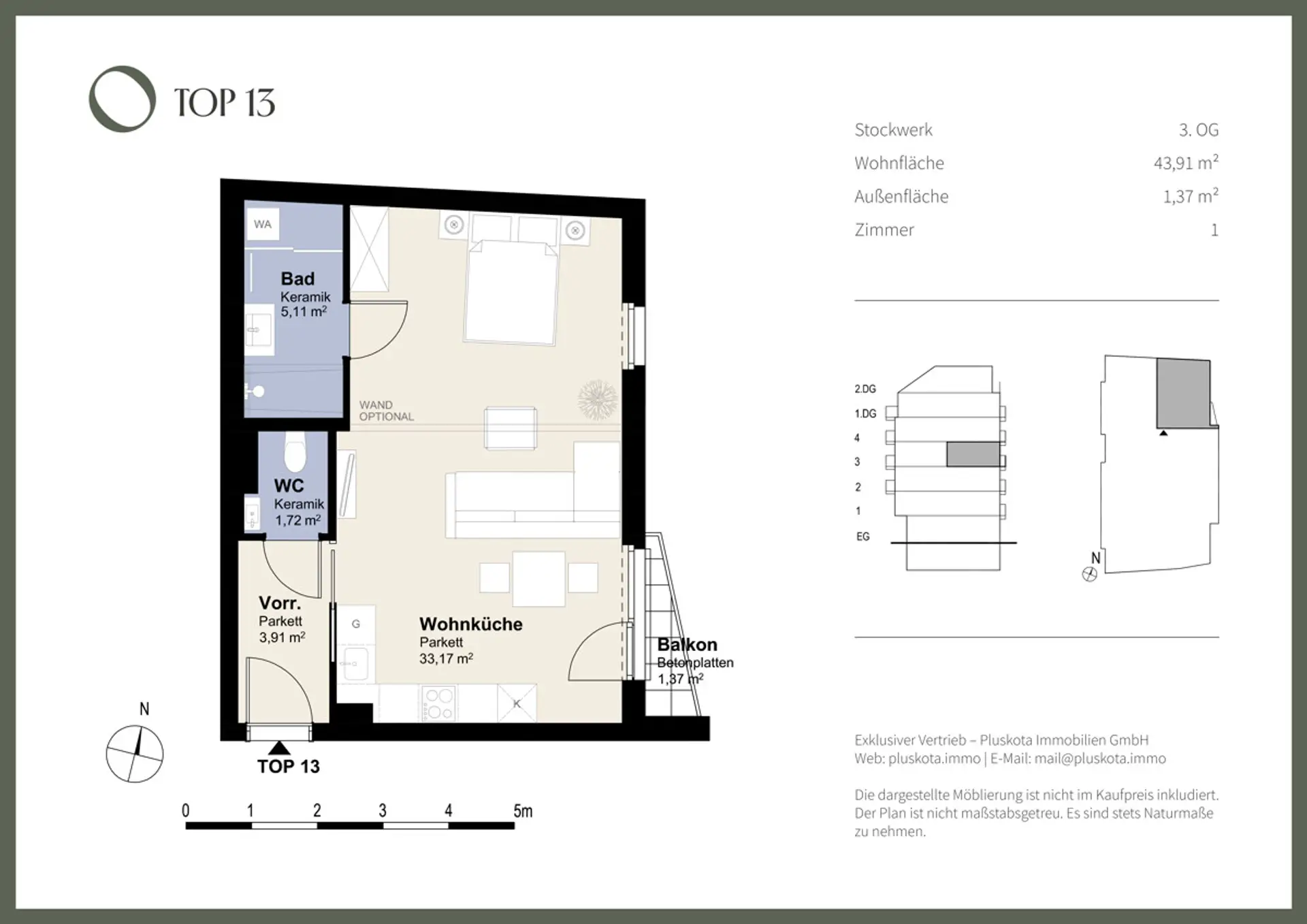 TOP13: Die charmante 1 Zimmer Wohnung im 3.OG bietet 43,91m² Wohnfläche und überzeugt durch eine klare und gut nutzbare Raumaufteilung. Der helle Wohnbereich mit integrierter Küchenzone sorgt für ein angenehmes Wohngefühl und verfügt über direkten Zugang zum 1,37m² großen ostseitigen Balkon. Der Schlafbereich ist harmonisch im Wohnraum integriert und flexibel gestaltbar. Das Badezimmer mit Dusche ist über den Wohn-/Schlafbereich aus begehbar. Das WC befindet sich im Vorraum WC. Ideal für Singles und Anleger. Raumaufteilung: Vorraum, separates WC, Wohnküche mit Schlafbereich und Balkon, Badezimmer mit Dusche.