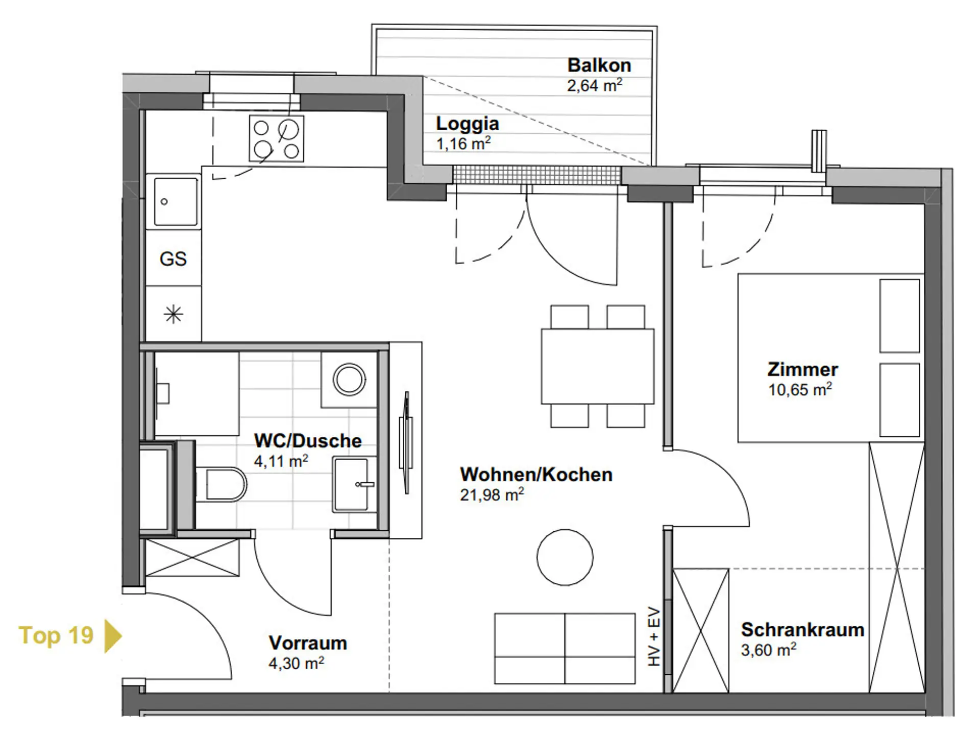 Wohnung zum Kauf in 1100 Wien - Kaufpreis: 273.900 € / Objektnummer: Etage 3/Top 19 _07
