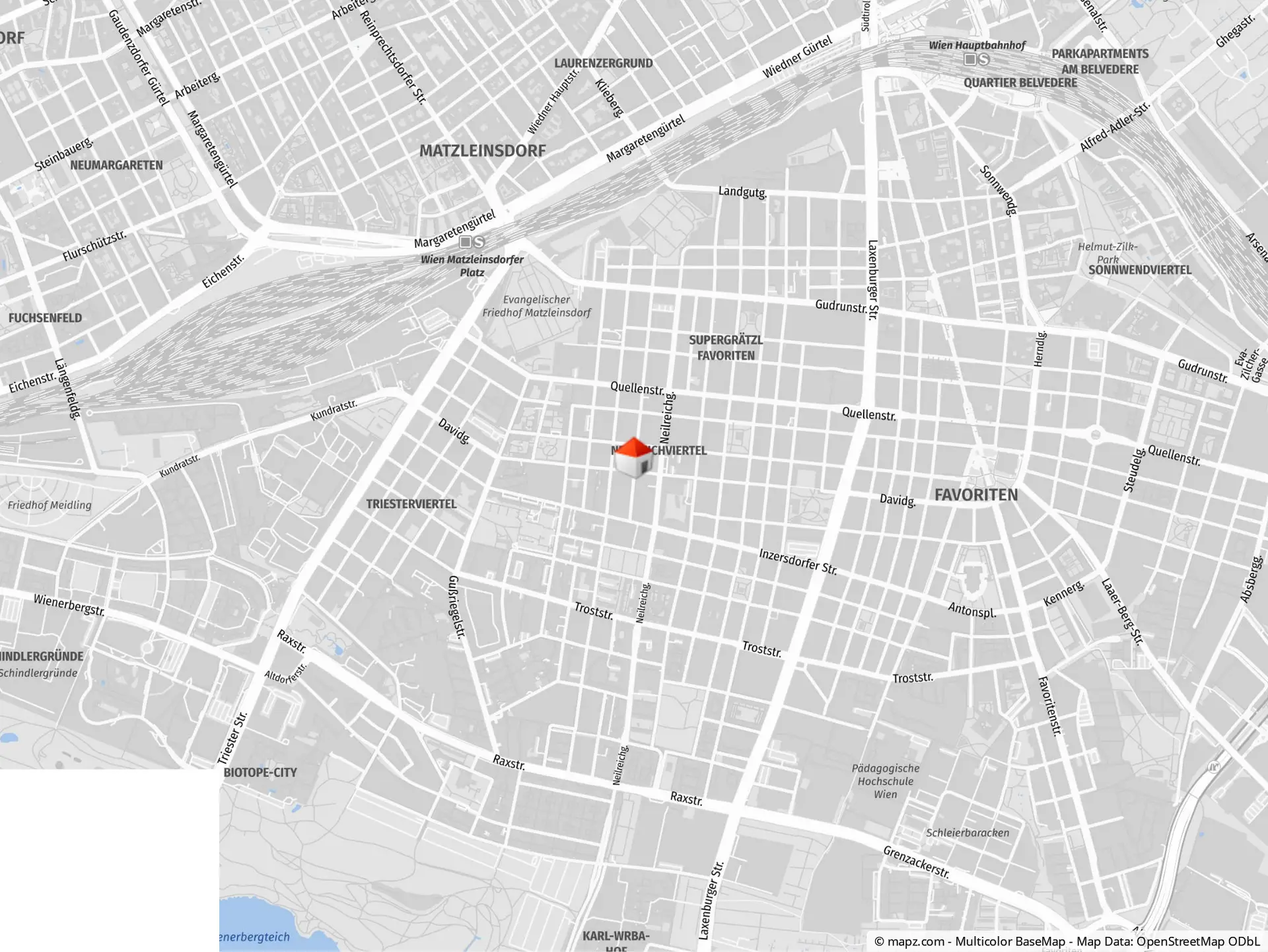 Die Nähe zu wichtigen Verkehrsknotenpunkten wie dem Matzleinsdorfer Platz, dem Hauptbahnhof und dem Reumannplatz macht das Wohnbauprojekt in der Davidgasse in Favoriten nicht nur gut erreichbar, sondern auch zu einem zentralen Punkt in der Stadt.