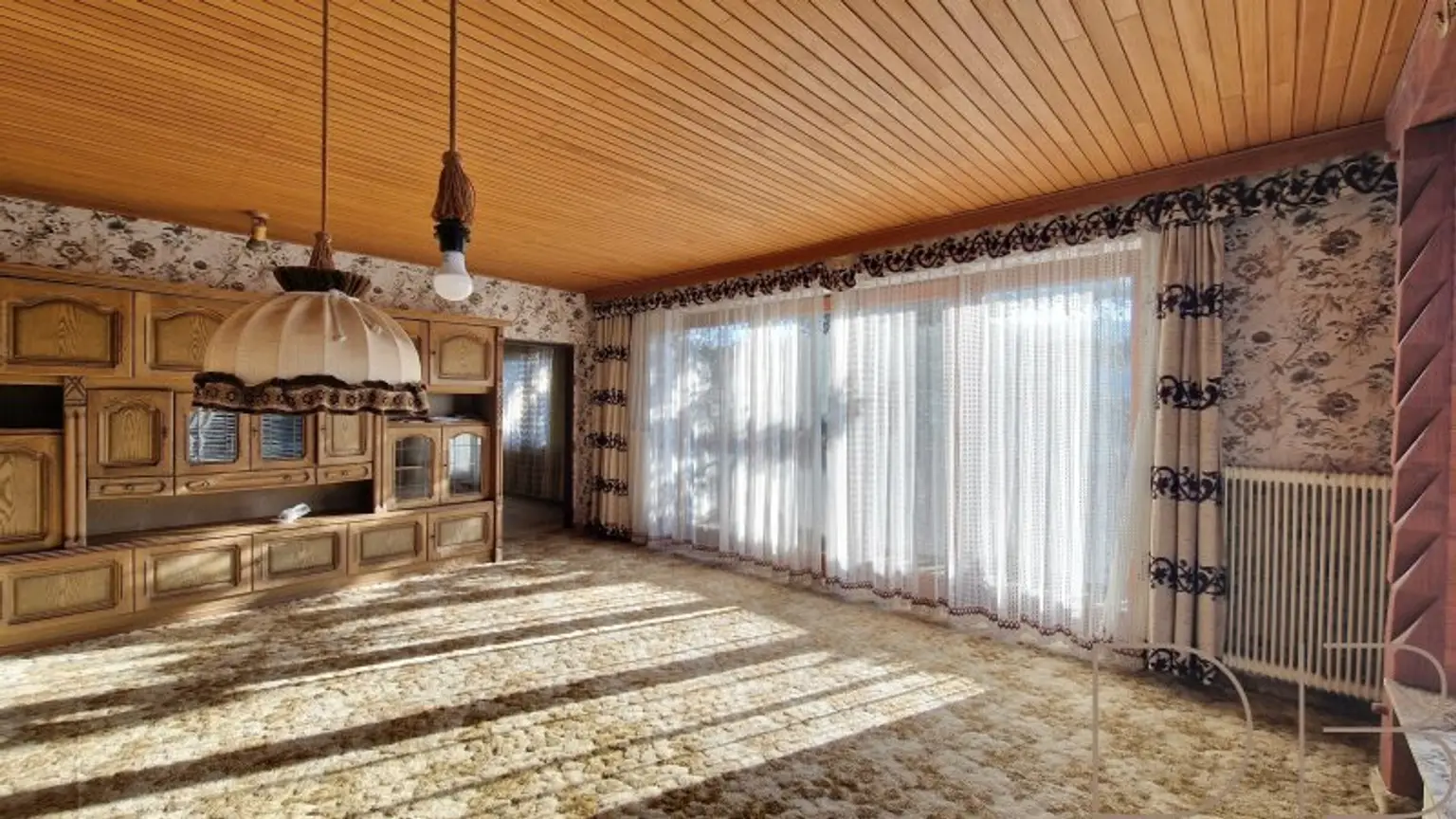 Die Immobilie präsentiert sich im originalen 70er-Jahre-Retrostil und befindet sich insgesamt in sanierungsbedürftigem Zustand – ideal für Käufer, die ihre eigenen Wohnideen verwirklichen möchten.