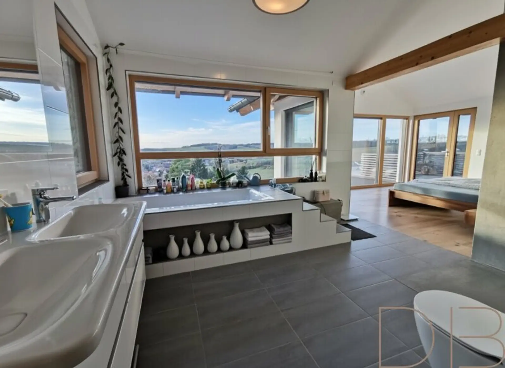 * Großzügiger Panoramakamin für gemütliche Abende