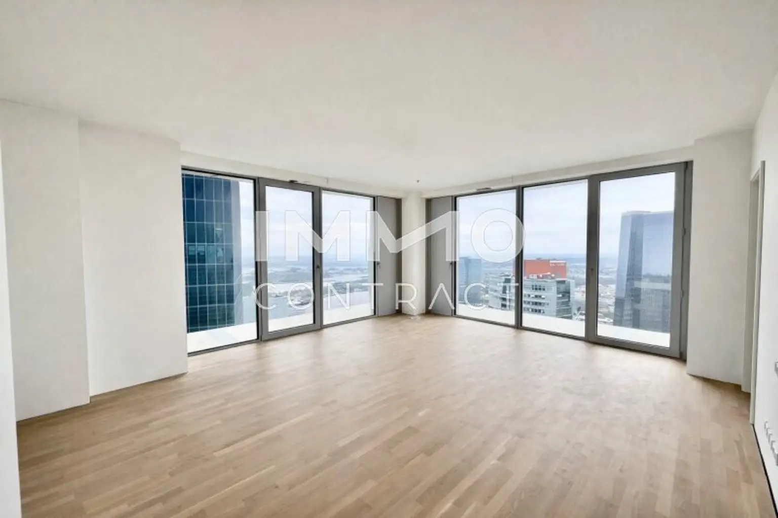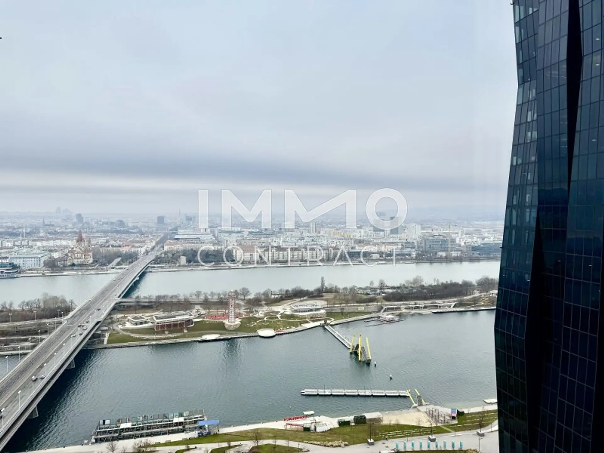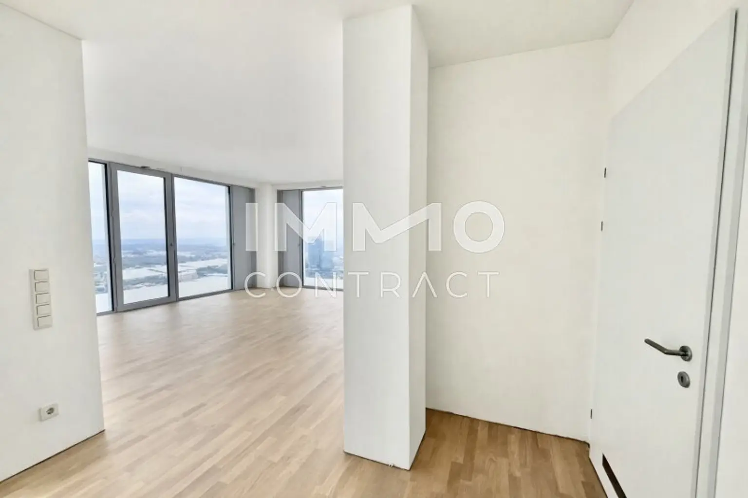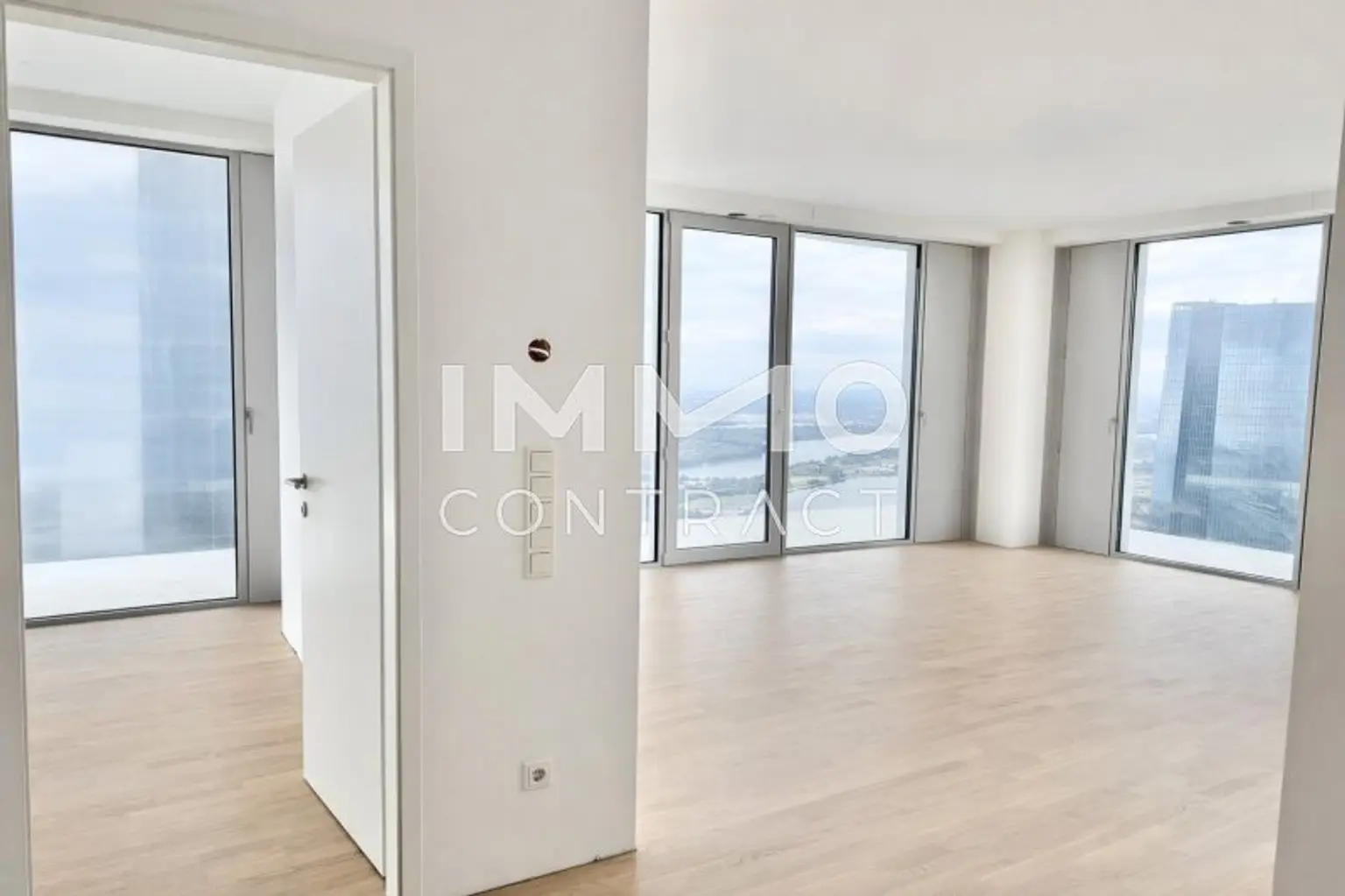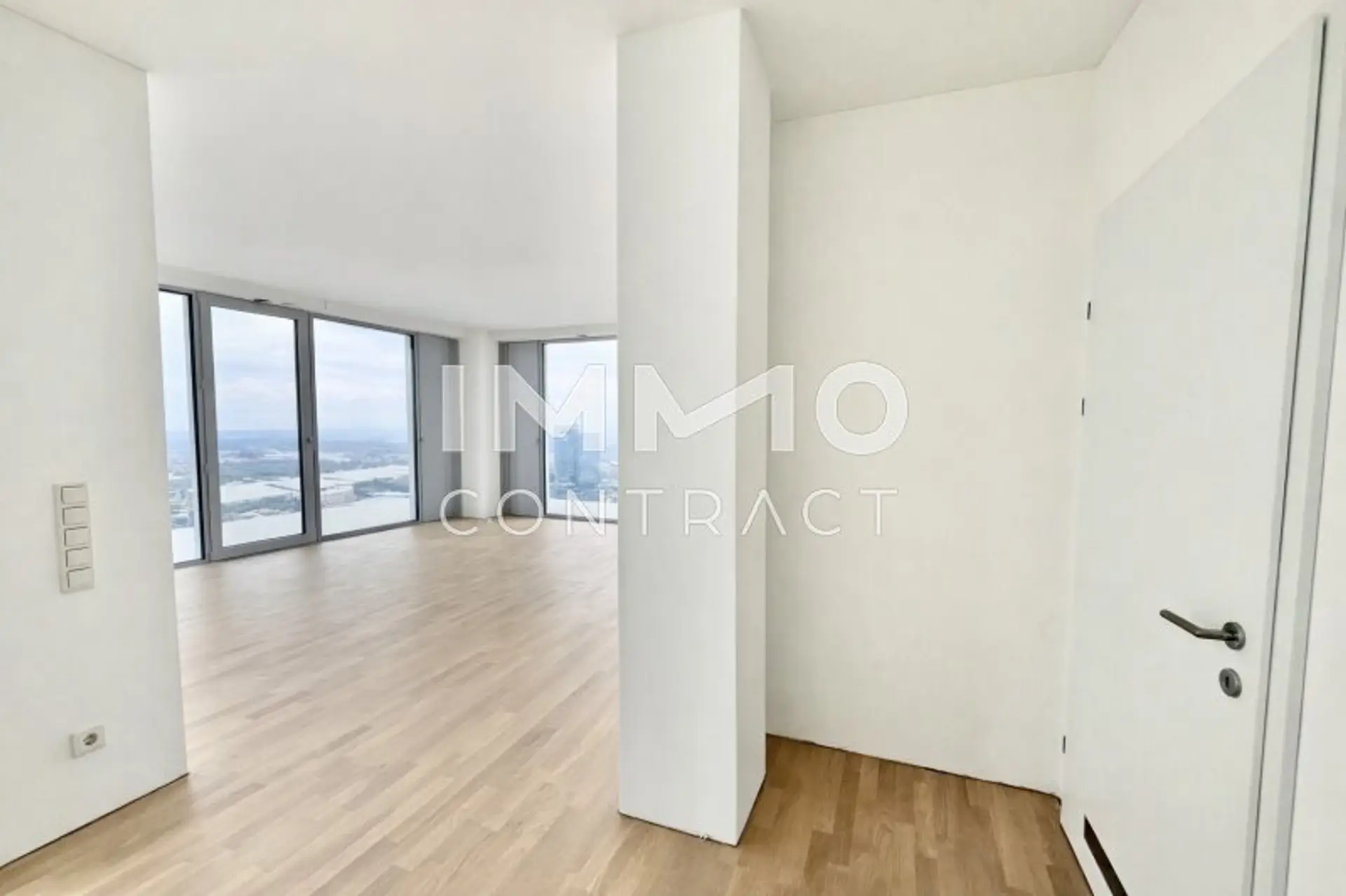 DIESE AUSSERGEWÖHNLICHE 3-ZIMMER-ECKWOHNUNG IM DC2 TOWER VEREINT GROSSZÜGIGES RAUMGEFÜHL MIT SPEKTAKULÄRER WEITSICHT. DURCH DIE ECKLAGE PROFITIEREN SIE VON ZWEI AUSSENFLÄCHEN UND EINEM EINZIGARTIGEN PANORAMA MIT BLICK AUF WIEN, SOWIE DEN KAHLENBERG, LEOPOLDSBERG UND DIE DONAU. DIE WESTLICHE AUSRICHTUNG SORGT FÜR LICHTDURCHFLUTETE RÄUME UND EINDRUCKSVOLLE SONNENUNTERGÄNGE ÜBER DER SKYLINE. DIE BEIDEN LOGGIEN – EINE CA. 25 M² GROSSE HAUPTLOGGIA UND EINE ZWEITE CA. 15 M² GROSSE LOGGIA – ERWEITERN DEN WOHNRAUM INS FREIE UND SCHAFFEN PRIVATE RÜCKZUGSORTE ÜBER DEN DÄCHERN DER STADT.