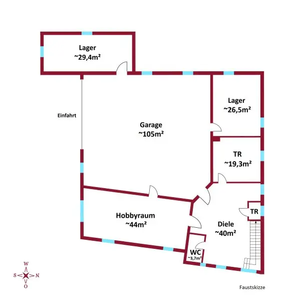 AUTOLIEBHABER AUFGEPASST! Endlich eine hauseigene Garage, wo alle Ihre Schmuckstücke Ihren Platz finden. Auf ca. 105 m² lassen sich bis zu 6 Autos unterbringen. Zusätzlich besteht die Möglichkeit, weitere Autos auf dem Grundstück außerhalb der Garage zu parken.