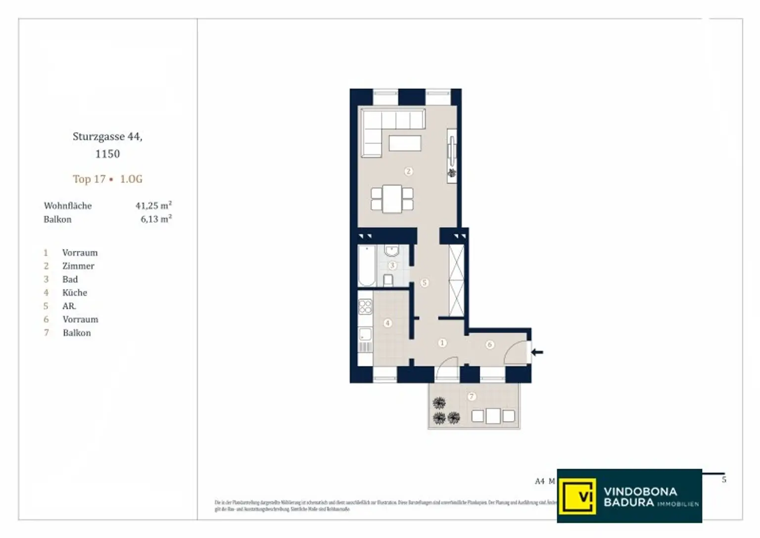 Mit einer Wohnfläche von 41,25 m² bietet sie eine kompakte, aber sehr gut durchdachte Raumaufteilung, ideal für Singles, Paare oder als Stadtwohnung. Die Grundrissgestaltung ermöglicht helle Räume und ein angenehmes Wohngefühl.
