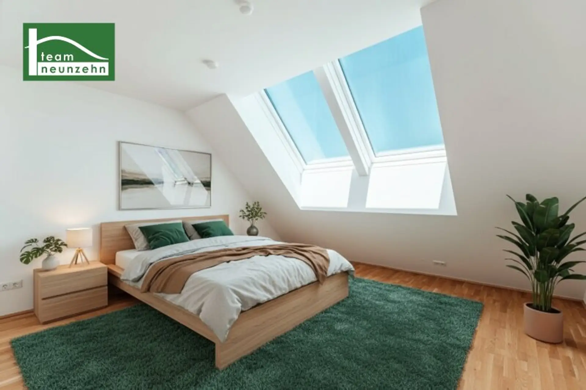 Die drei Zimmer Wohnung umfasst ca. 89,96 m² und befindet sich im ersten Dachgeschoß mit nördlicher Ausrichtung.