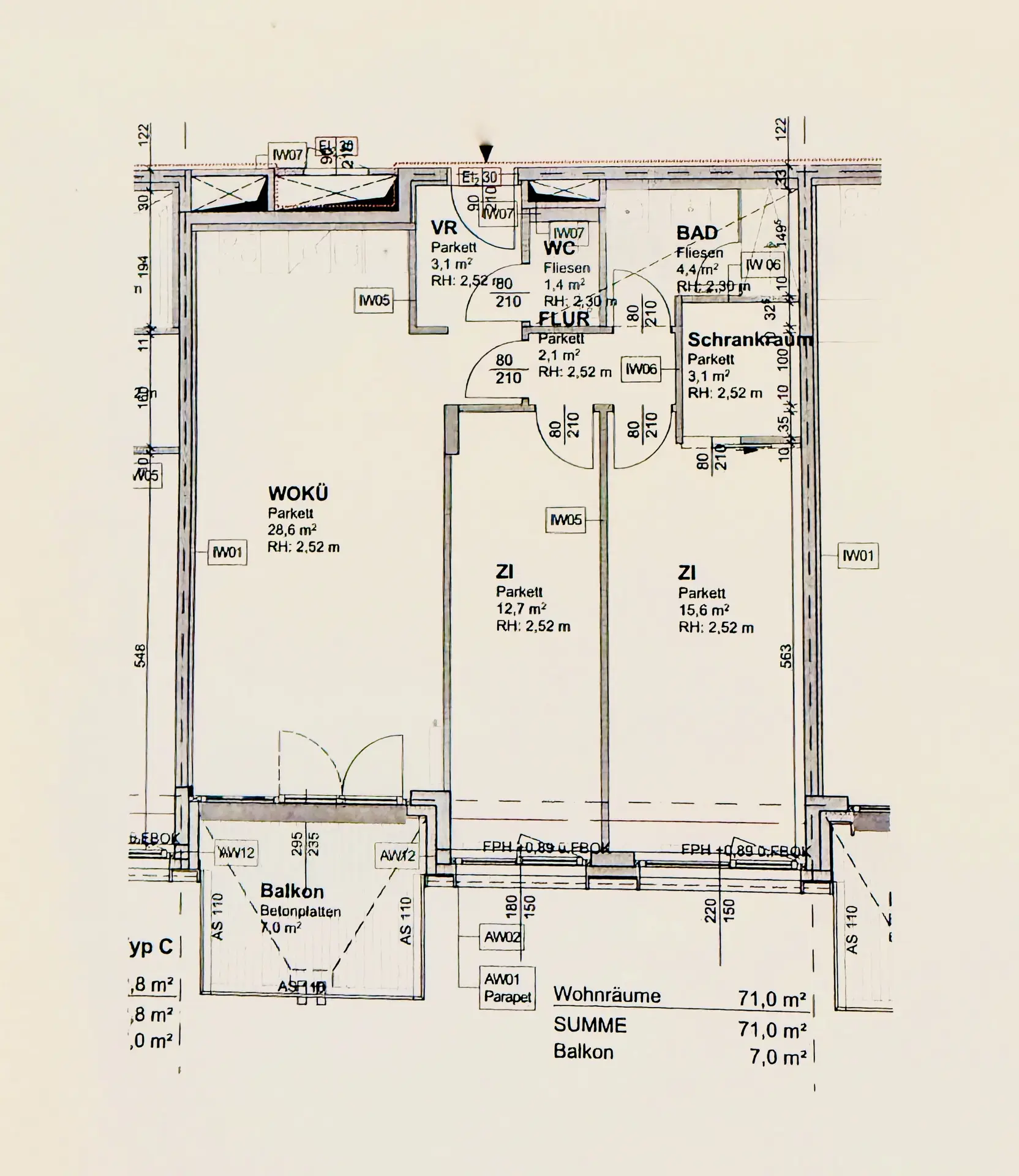 Mit einem durchdachten Grundriss und einem hochwertigen Eichenparkettboden in den Wohnräumen vermittelt die ca. 71m² große 3 Zimmerwohnung direkt ein Gefühl von Behaglichkeit und Wärme beim Betreten.