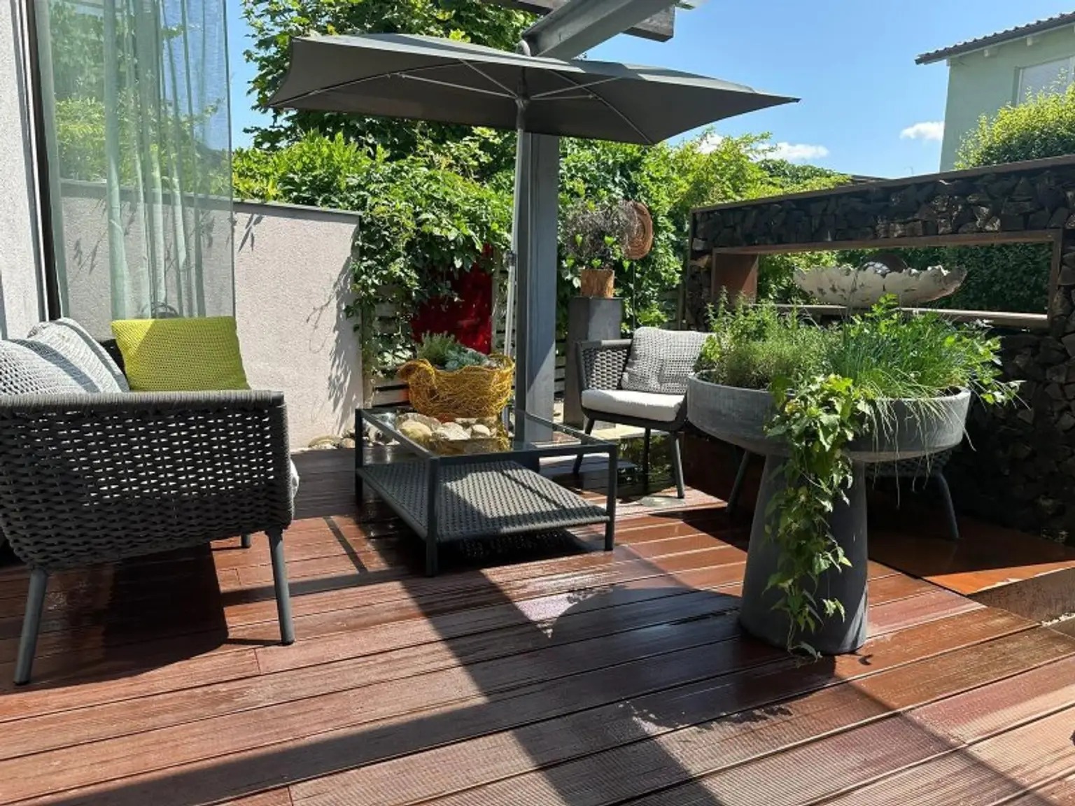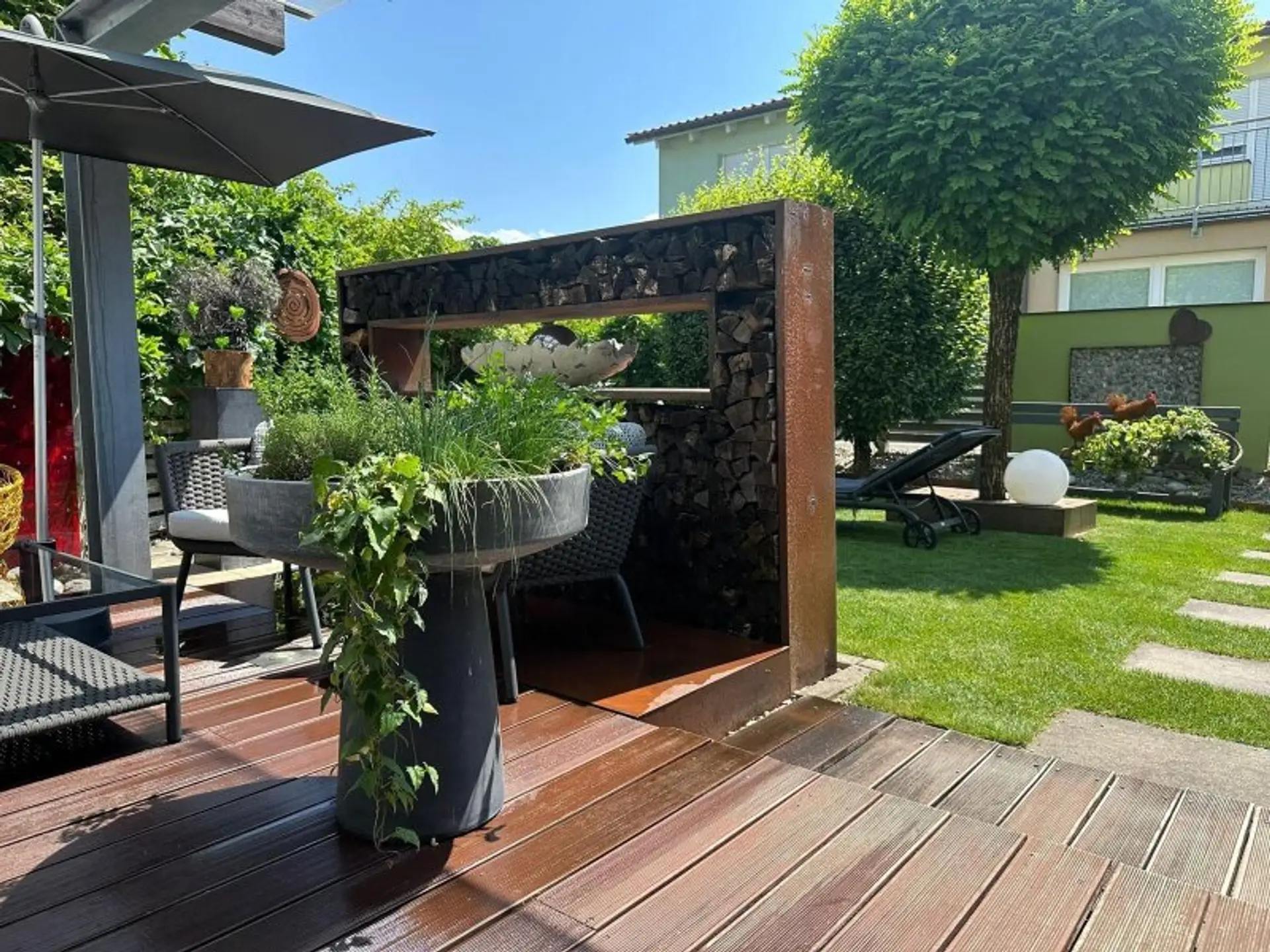 Die Terrasse und die beiden Balkone laden Sie ein, die Natur zu genießen und die frische Luft zu atmen. Der von den Hausherrn liebevoll gestaltete Garten bietet die Möglichkeit, im Freien zu entspannen und ein wenig zu "Garteln".