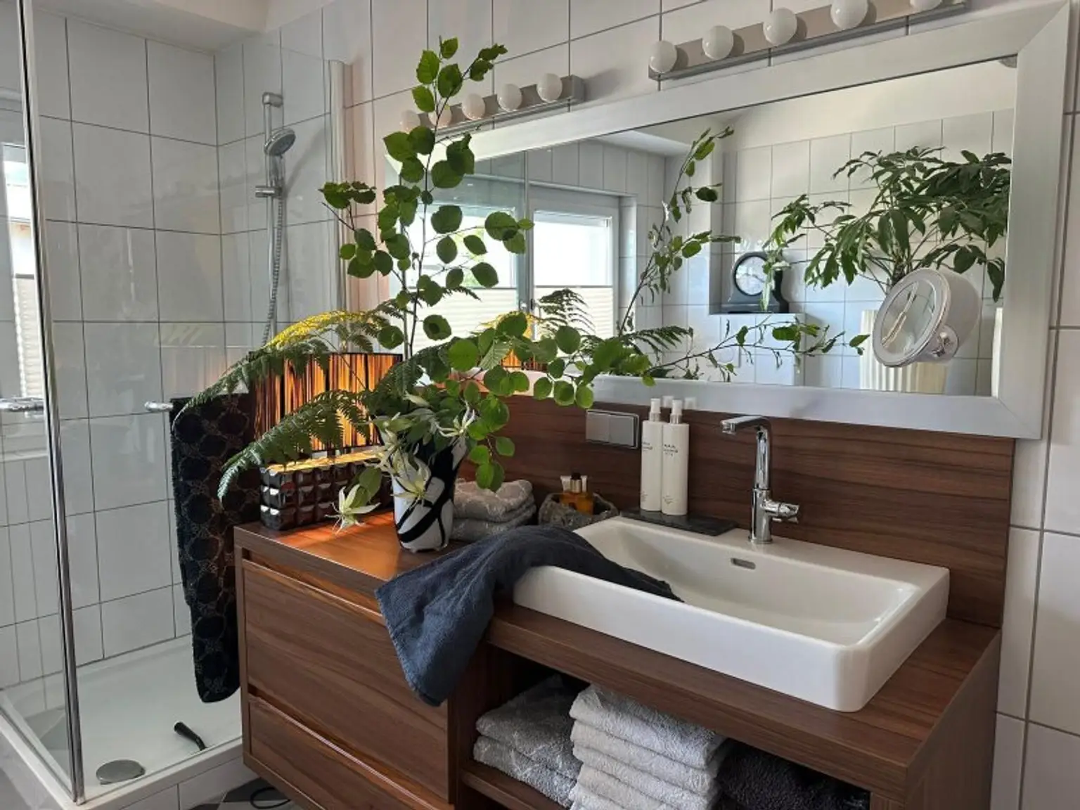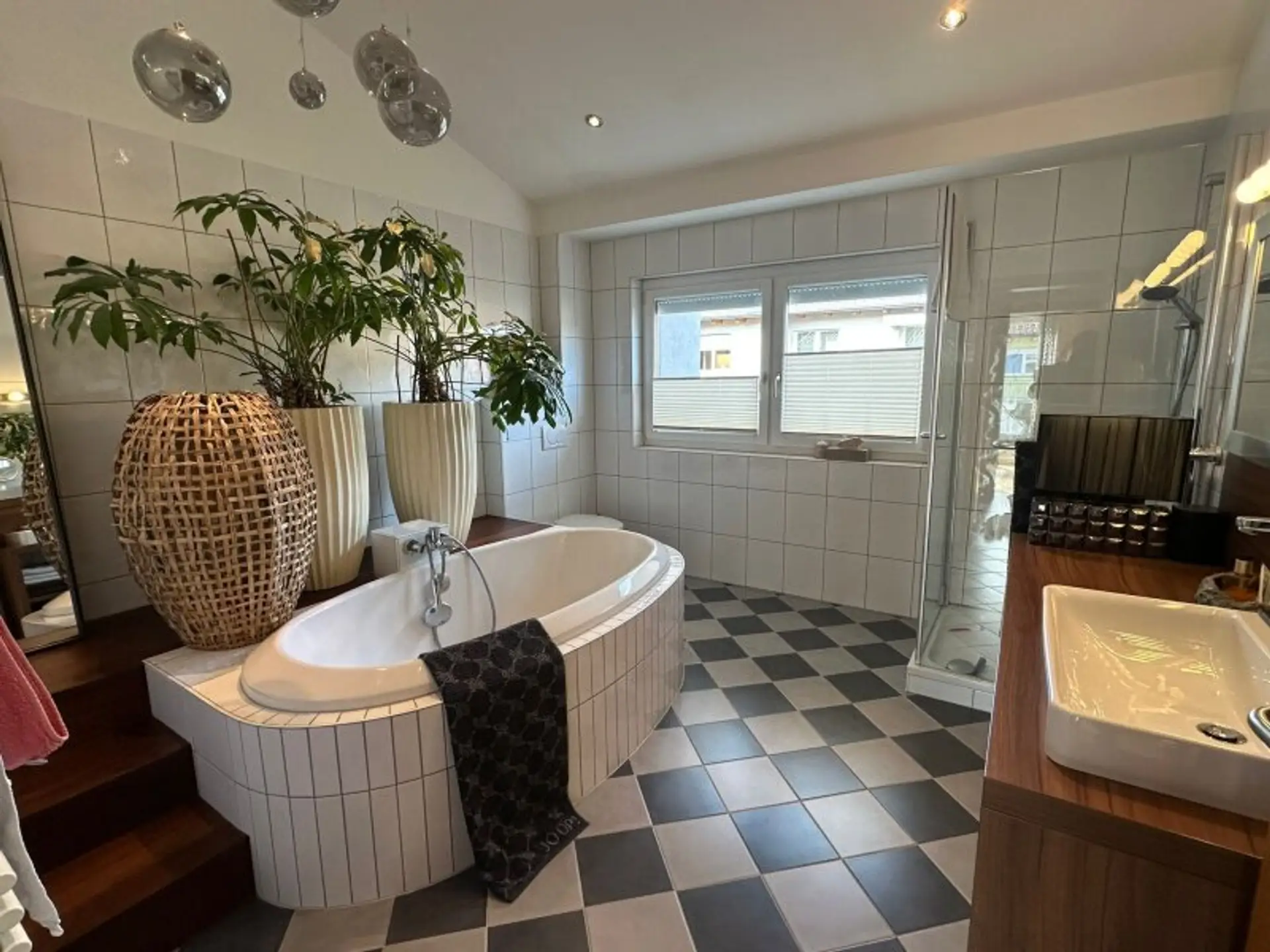 Die Eigentümer haben das Reihenhaus liebevoll adaptiert und viele Sonderausstattungen hinzugefügt, wie etwa die große Badewanne, die Wanddekorationen, die Änderung der Stiege und die Gartengestaltung. Clevere Ideen wurden von der Hausherrin umgesetzt, die bereits viele Jahre in der Dekoration-und Einrichtungsbranche tätig ist.
