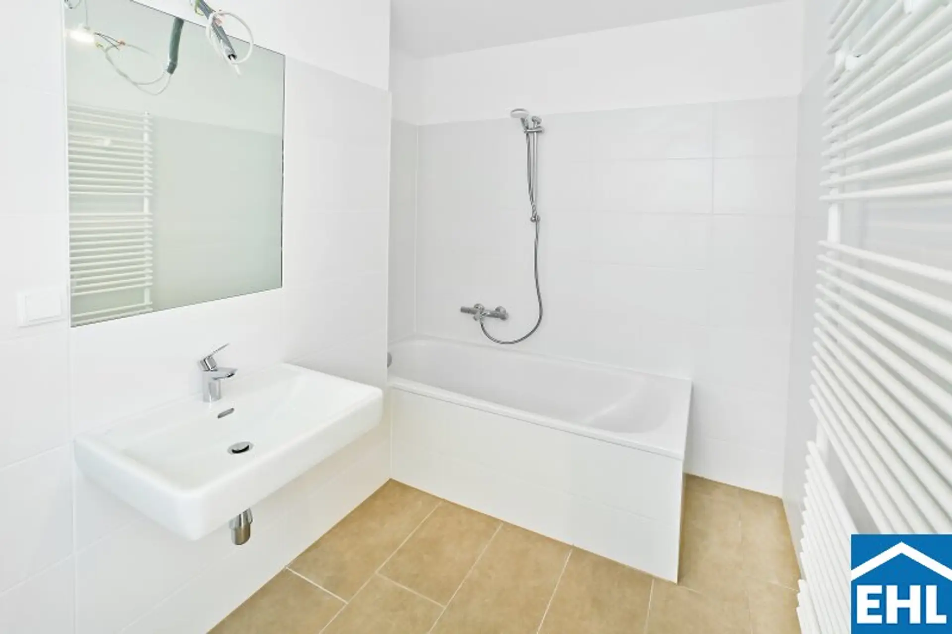 * Moderne Bäder mit Badewanne und Waschmaschinenanschluss.