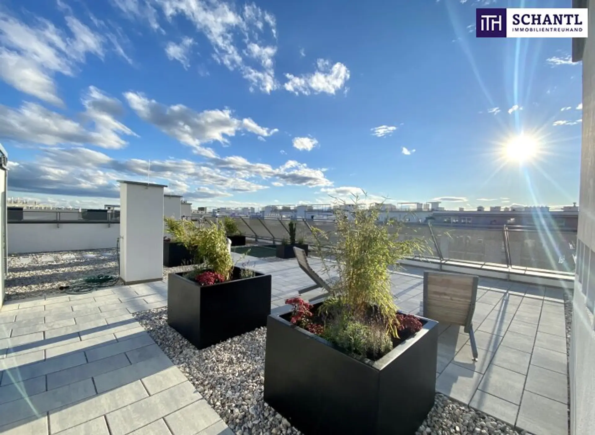 Highlight: Genießen Sie die große hauseigene Dachterrasse mit dem wunderbaren Fernblick, die den Mietern exklusiv zur Verfügung steht. Hier entspannen Sie in den Chillout-Bereichen, machen Sport auf den aufgestellten Fitnessgeräten, oder nutzen den integrierten Weichboden für Yoga.
