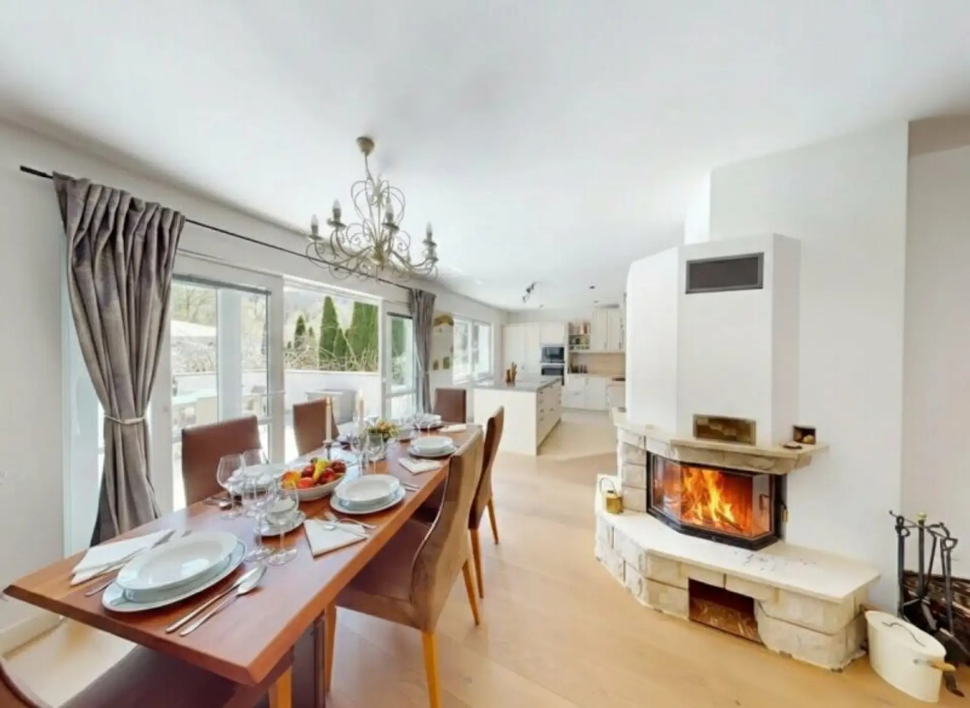 Vorzimmer, Wohnzimmer mit Kamin und Küche, Wirtschaftsraum, Bad mit Wanne & WC
