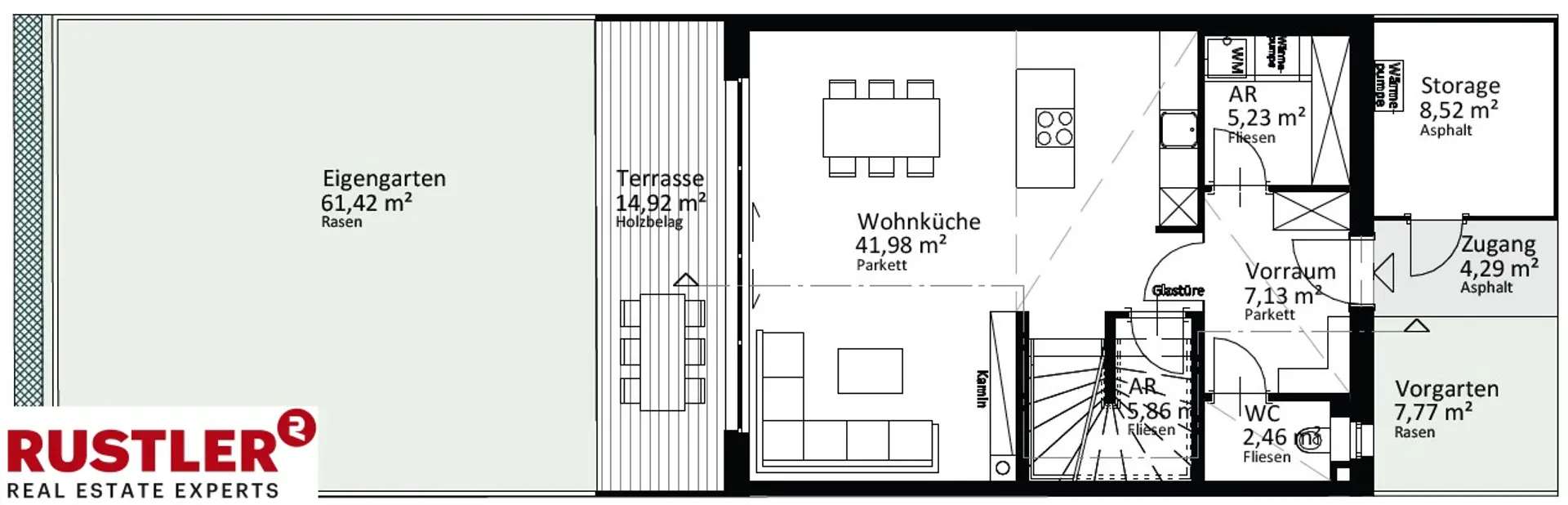 Elegante Parkettböden in allen Wohn- und Schlafräumen, Innentüren weiß matt mit Holzzarge bzw. Glastüren, großzügige Terrasse im Erdgeschoß mit Kaltwasseranschluss und Außenbeleuchtung, Terrasse im Dachgeschoß mit beeindruckender Aussicht, großformatige Fliesen (60 x 60 cm) in den Sanitärbereichen, Badewannen mit Markenarmaturen, bodenbündige Duschen, sämtliche Häuser werden vollständig mit Raffstores ausgestattet und noch vieles mehr...