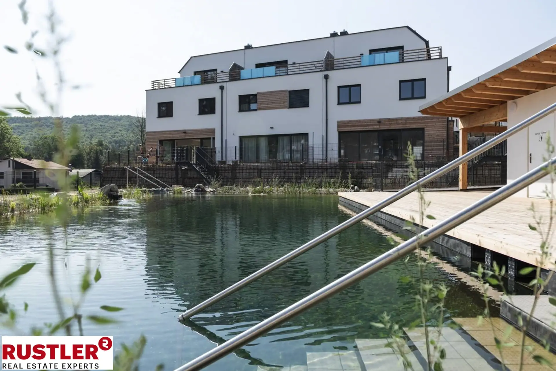 Um dieses Wohngefühl zu erzielen, war für uns besonders wichtig, dass sich die Architektur der einzelnen Häuser nahtlos in die Natur einfügt. Erreicht haben wir das unter anderem durch die teilweise Holzverkleidung der Gebäude und Begrünung der Dachflächen.