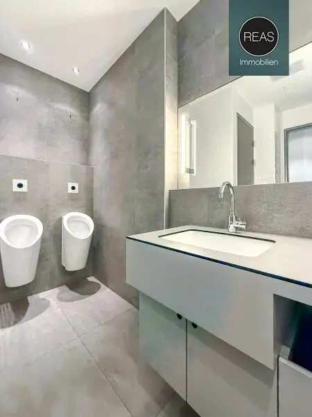 * 1 Herren-WC mit WC, 2 Pissoir und Waschraum