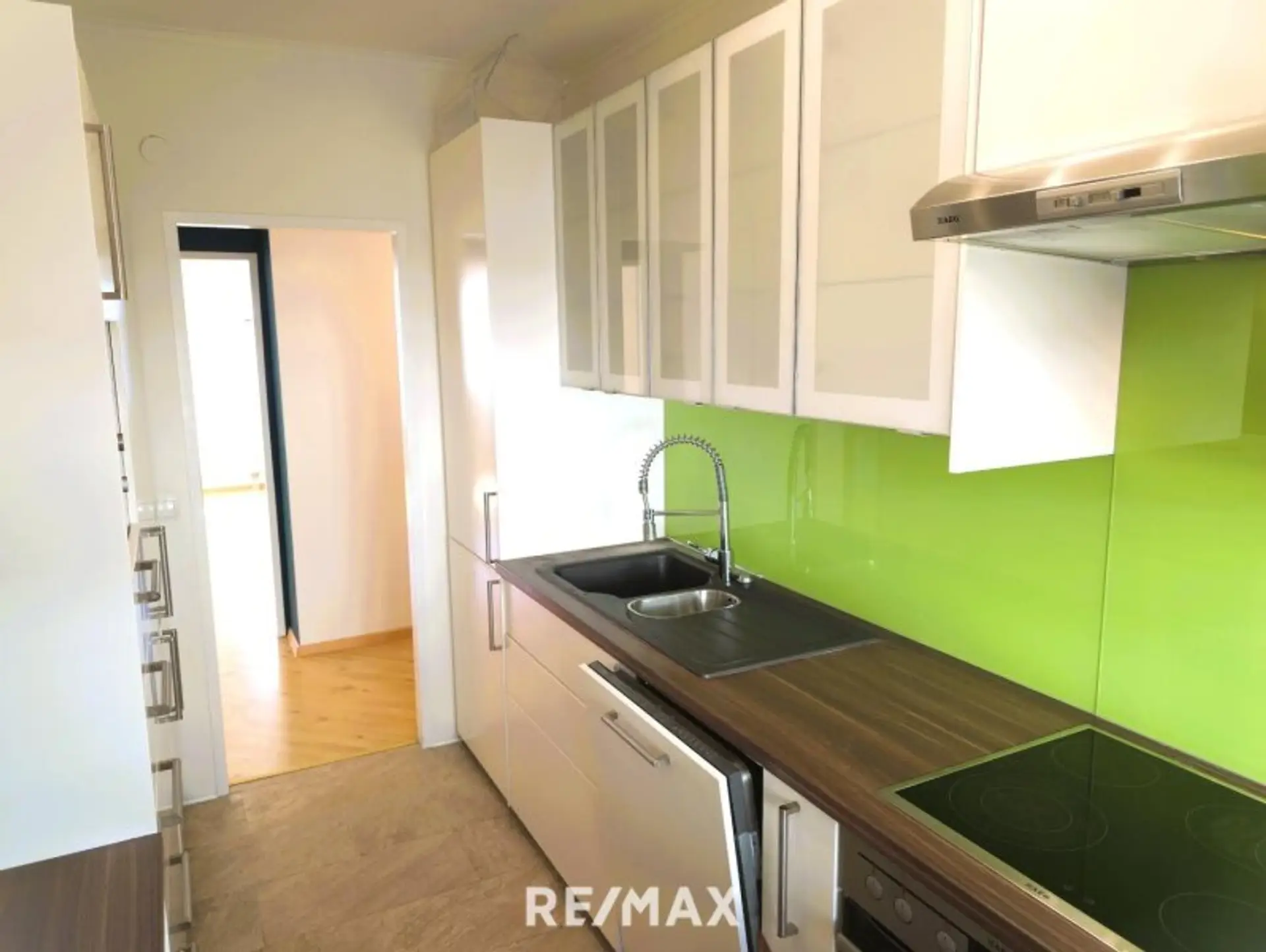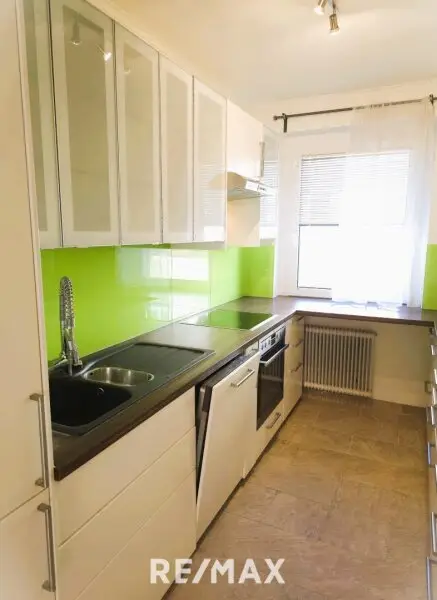 Diese moderne 3-Zimmer-Wohnung im 1. Stock überzeugt durch eine durchdachte Raumaufteilung, helle Räume und ein harmonisches Farbkonzept. Frische Farben in Weiß, Petrol und Grasgrün, kombiniert mit einem einheitlichen Boden, verleihen der Wohnung eine Atmosphäre wie aus einem Designmagazin – modern und gleichzeitig gemütlich.