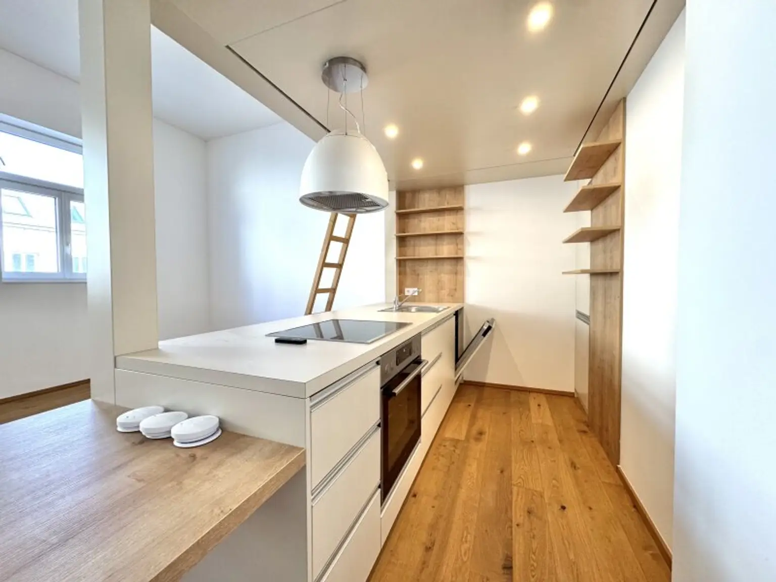 Ein weiterer Pluspunkt: Die voll ausgestattete Küche ist bereits im Kaufpreis inkludiert und fügt sich elegant in das Gesamtkonzept der Wohnung ein.