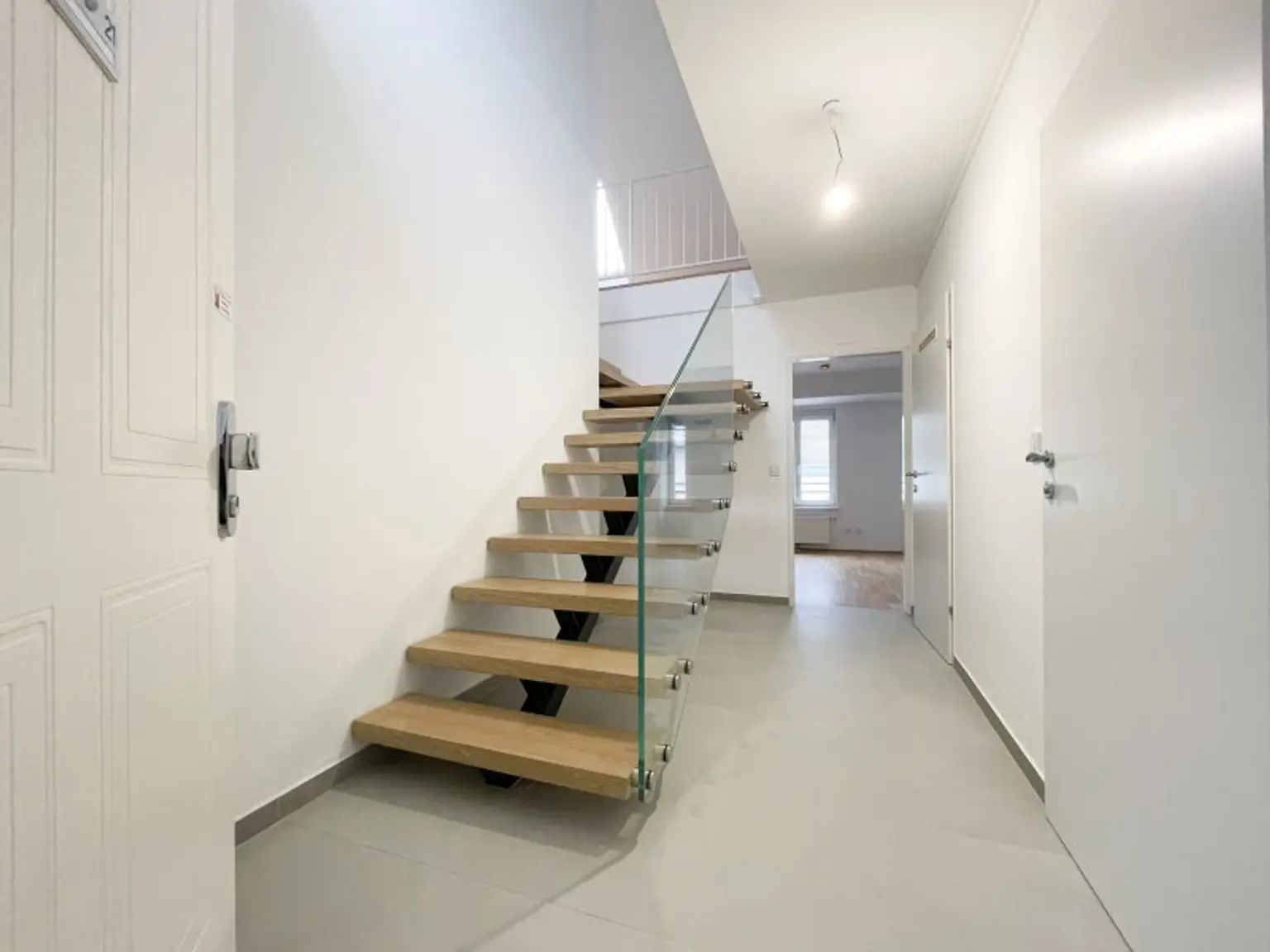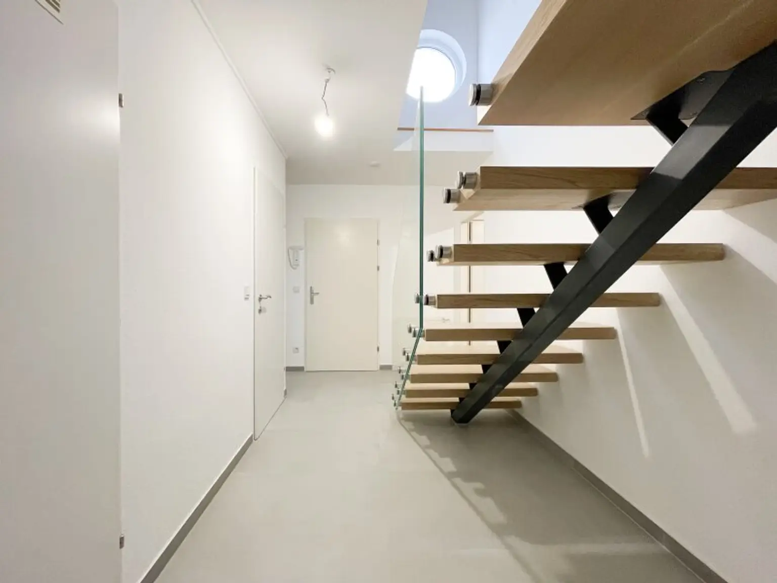 Der gesamte Fliesenboden im Vorraum und Abstellraum wurde gegen neue moderne großformatige Steinzeug-Fliesen getauscht und der Treppenaufgang mit stylischer Glaswand wurde ebenfalls komplett erneuert.