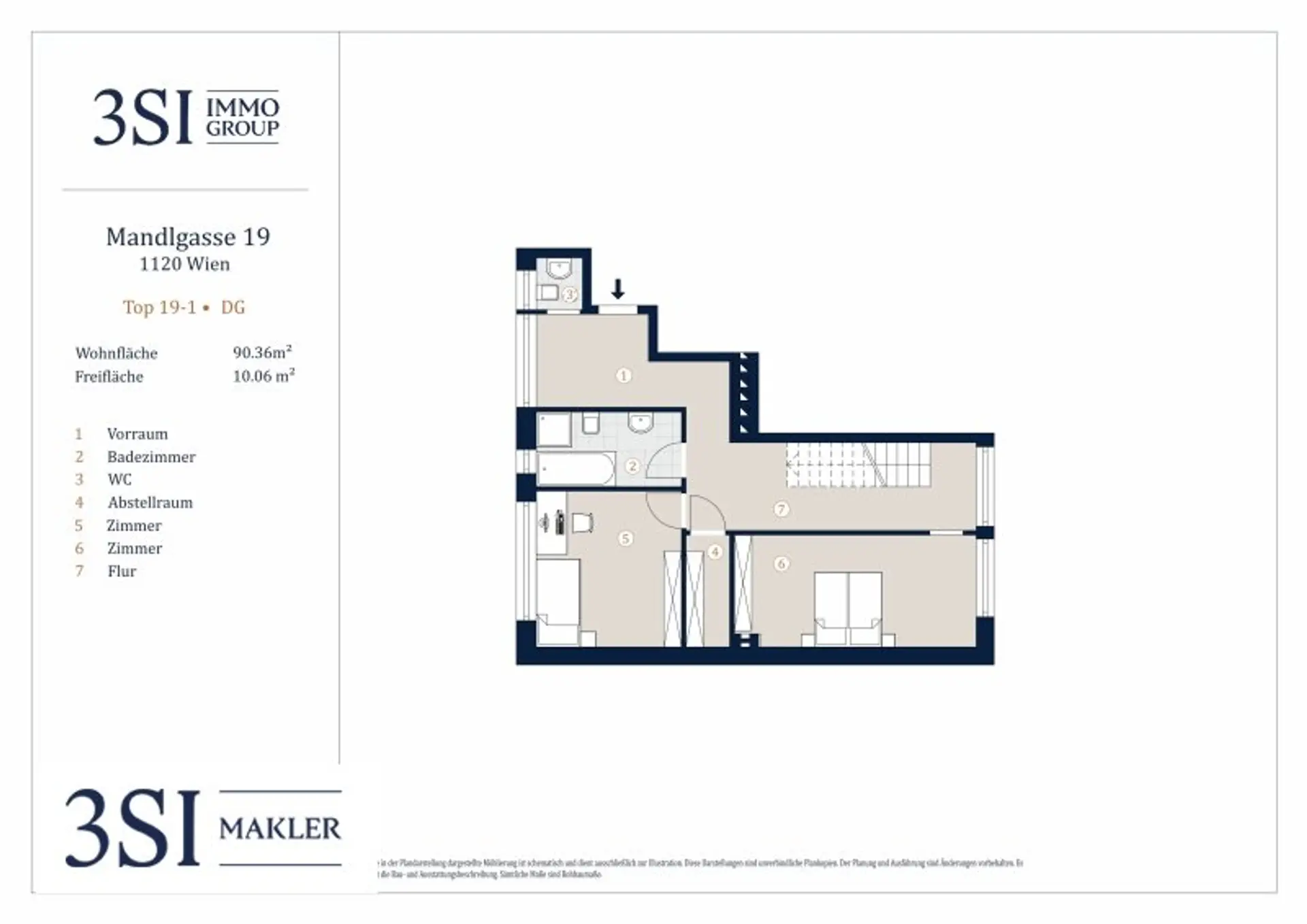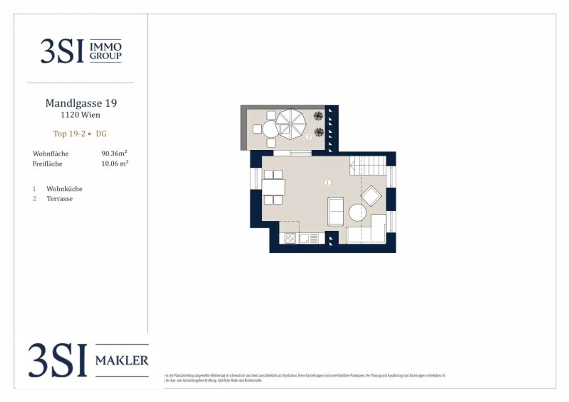 Diese möblierte DG-Maisonette mit 3 Zimmern und einer 10,06 m² großen Terrasse bietet auf rund 90,36 m² Wohnfläche eine und gut durchdachte Raumaufteilung: