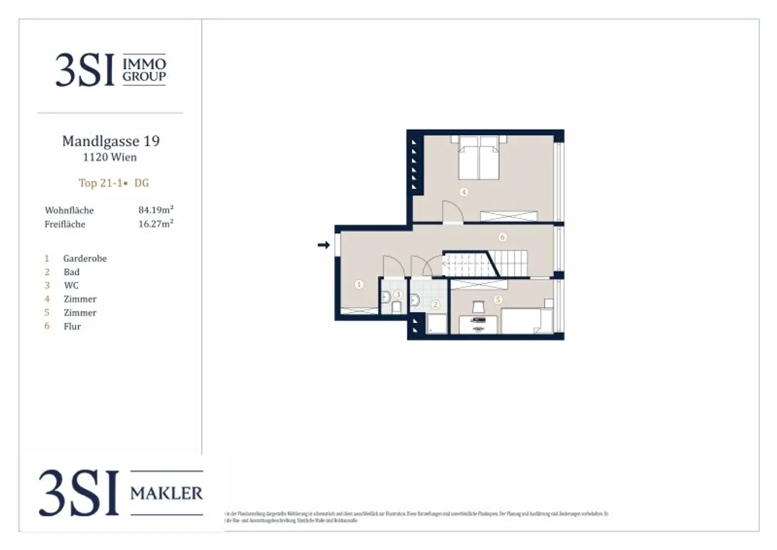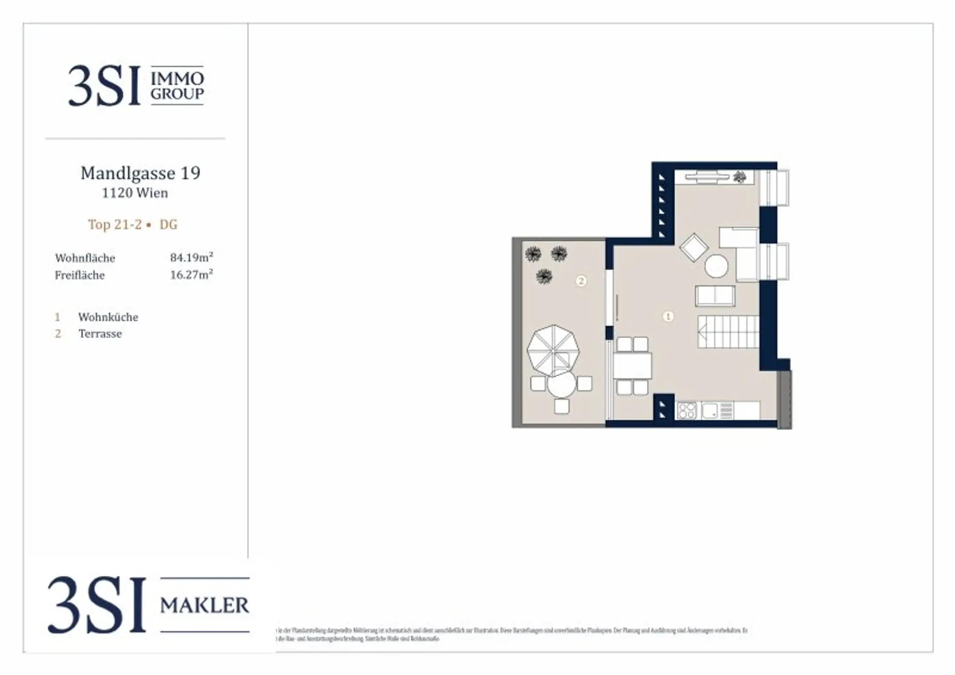 Diese möblierte DG-Maisonette mit 3 Zimmern und einer 16,27 m² großen Terrasse bietet auf rund 84,19 m² Wohnfläche eine und gut durchdachte Raumaufteilung: