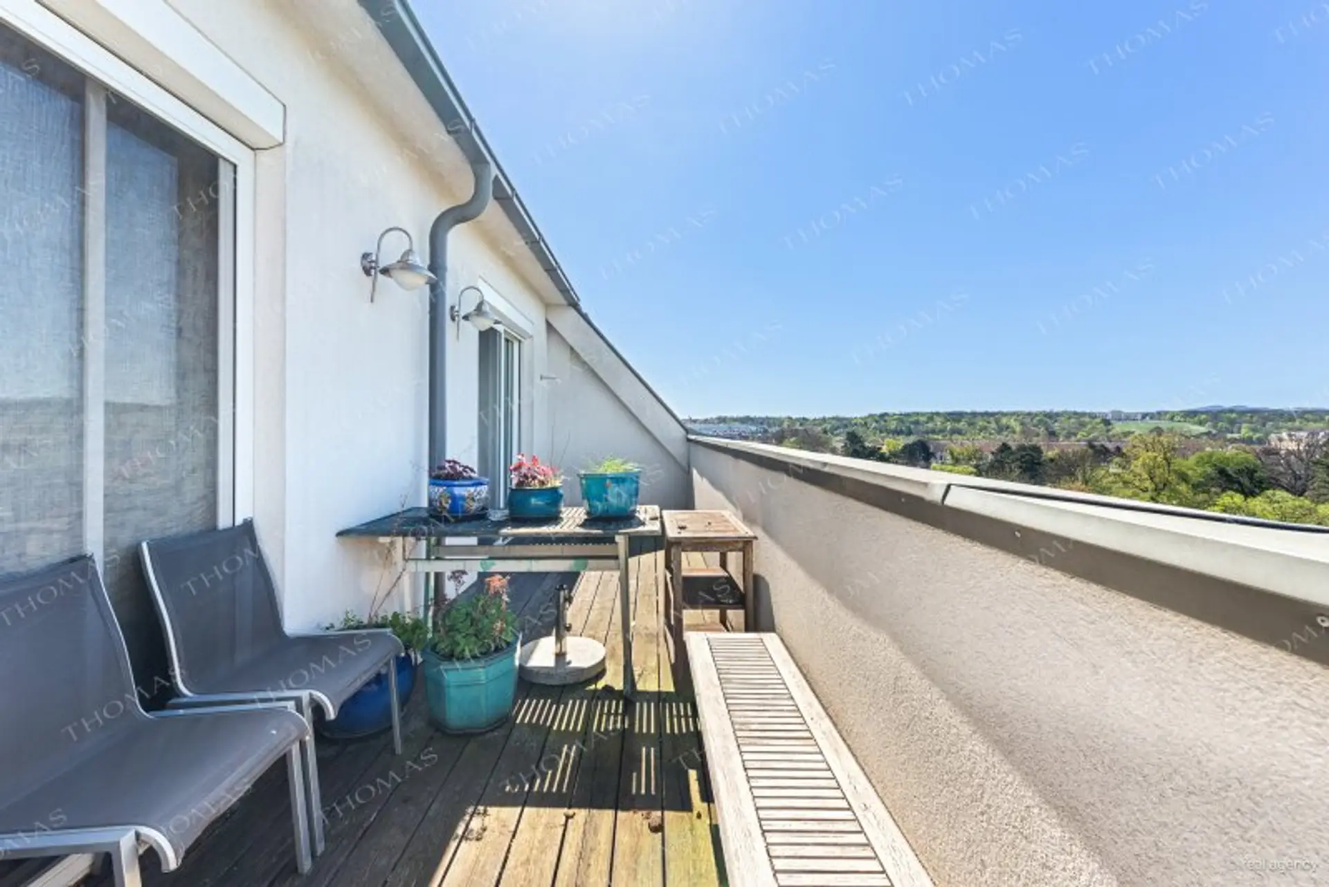 Ein absolutes Highlight sind die zwei südwestlich ausgerichteten Terrassen, die einen beeindruckenden Fernblick über den Auer-Welsbach-Park, das Schloss Schönbrunn, die Gloriette sowie das Technisches Museum Wien bieten. Dieser Ausblick lässt sich nicht nur im Freien genießen, sondern auch direkt aus dem Wohnzimmer und der Küche.
