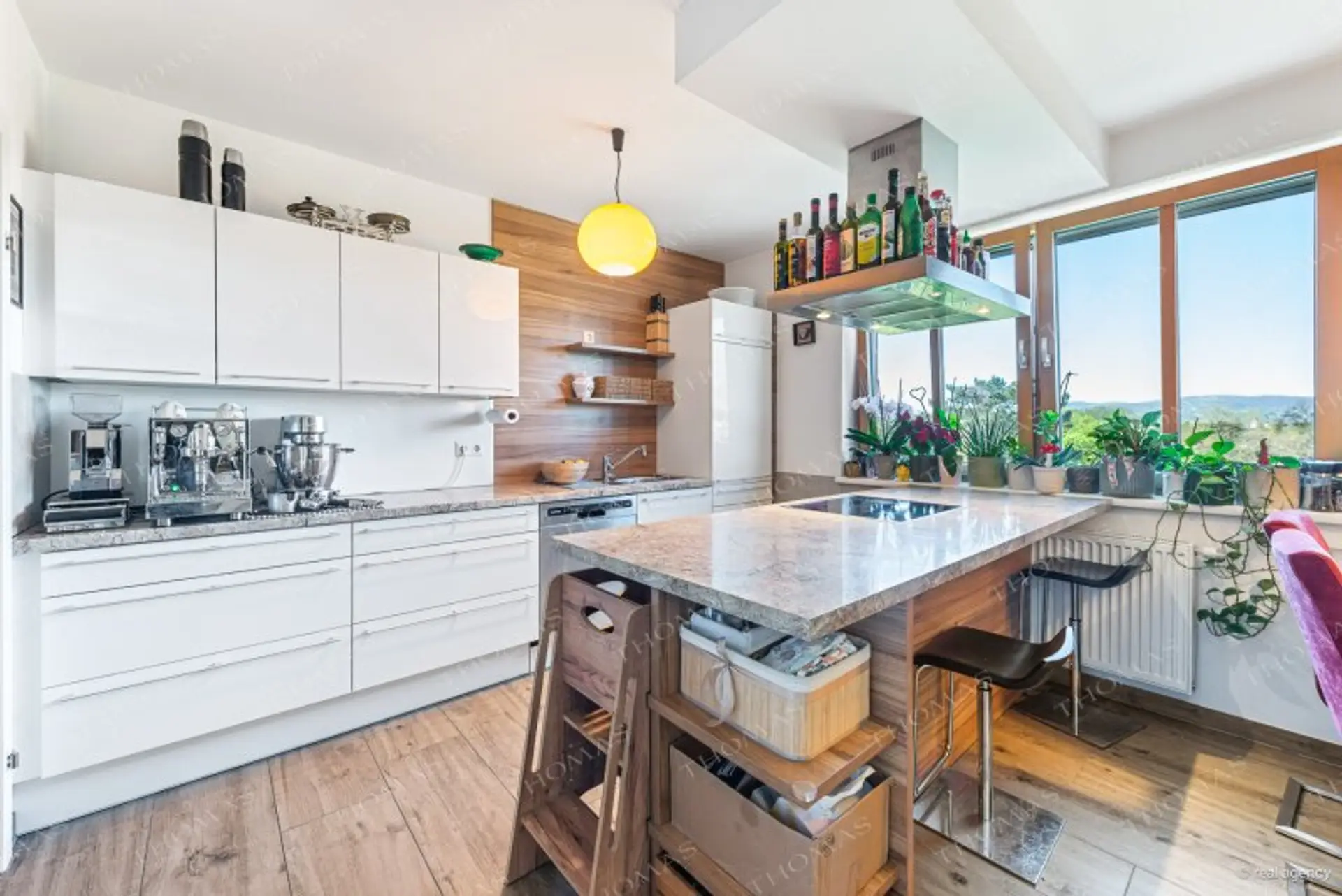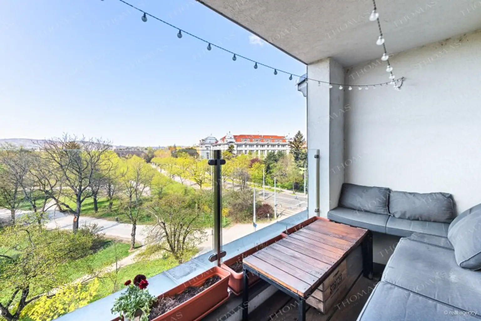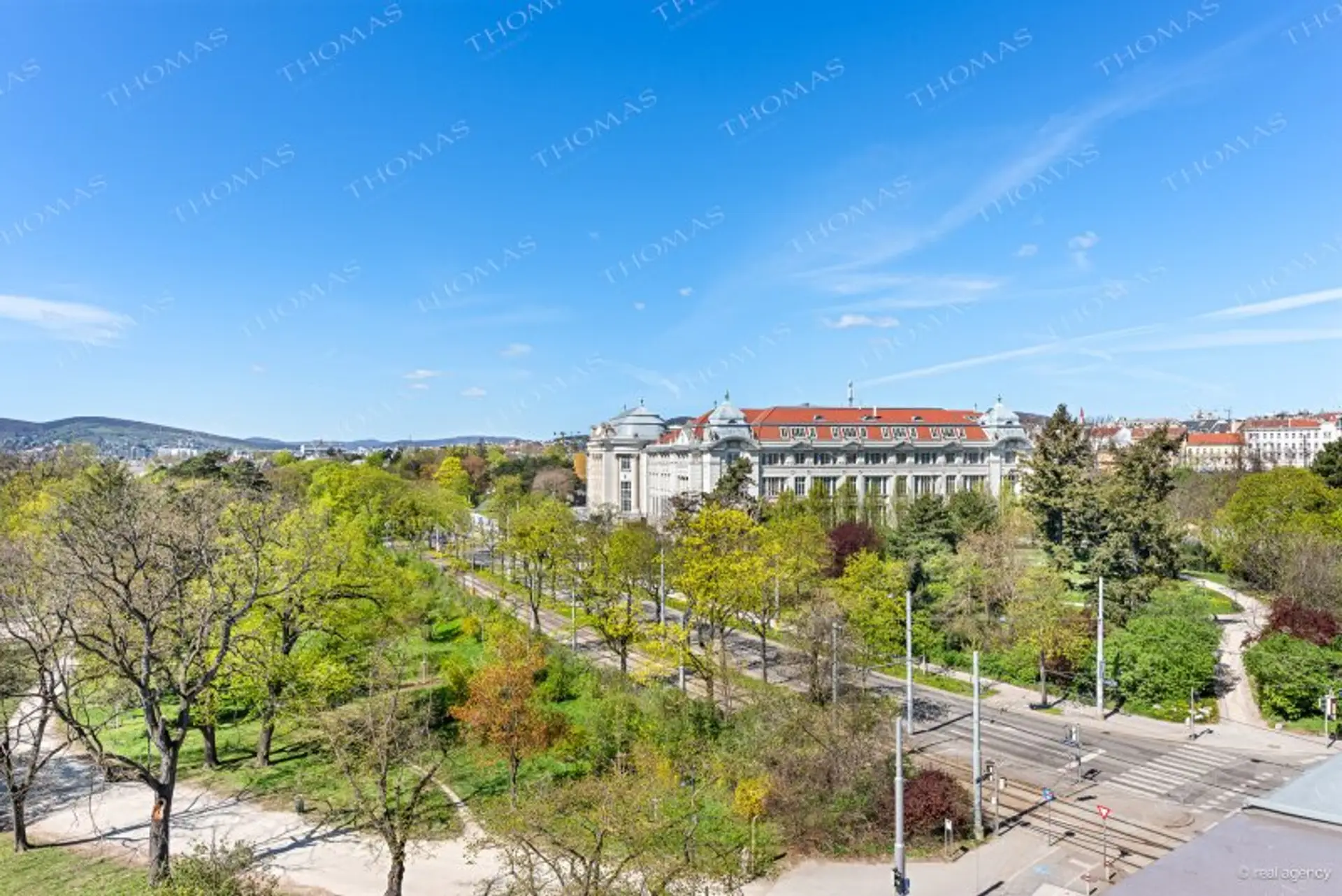 A true highlight are the two southwest-facing terraces, offering breathtaking panoramic views over Auer-Welsbach Park, Schönbrunn Palace, the Gloriette, and the Vienna Technical Museum. These stunning views can be enjoyed not only outdoors but also directly from the living room and kitchen.
