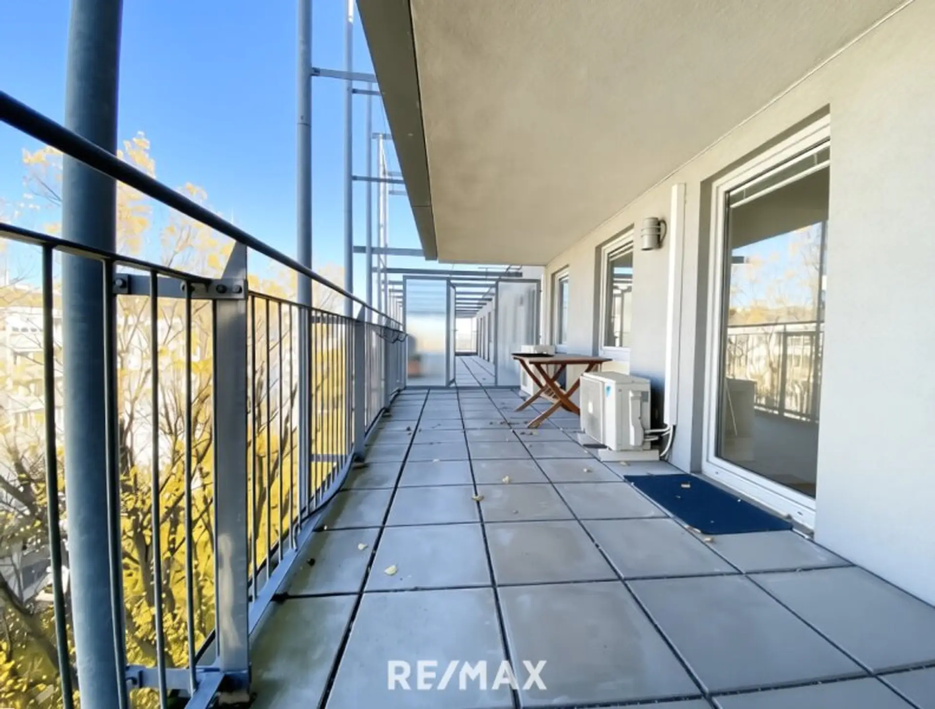 Zum Verkauf gelangt eine Dachgeschoßwohnung ohne Dachschrägen im 8. Liftstock, mit zwei großen Terrassen auf Wohnebene und einer Loggia.