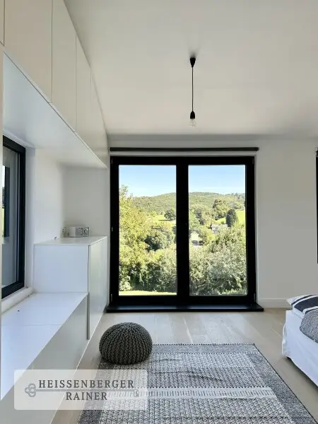 Am Ende einer Sackgasse - diskret und elegant inmitten herrlicher Natur gelegen - eröffnet sich ein Designhighlight, das auf leichte, ungezwungene und perfekt harmonische Weise den Sommer im Wienerwald neu und zeitgemäß interpretiert. Alle Räume bieten traumhafte Ausblicke über den Garten, den Pool und die Wiesen und Wälder der Umgebung - von Sonnenaufgang bis Sonnenuntergang lässt sich dieser wirklich besondere Rückzugsort entspannt genießen!