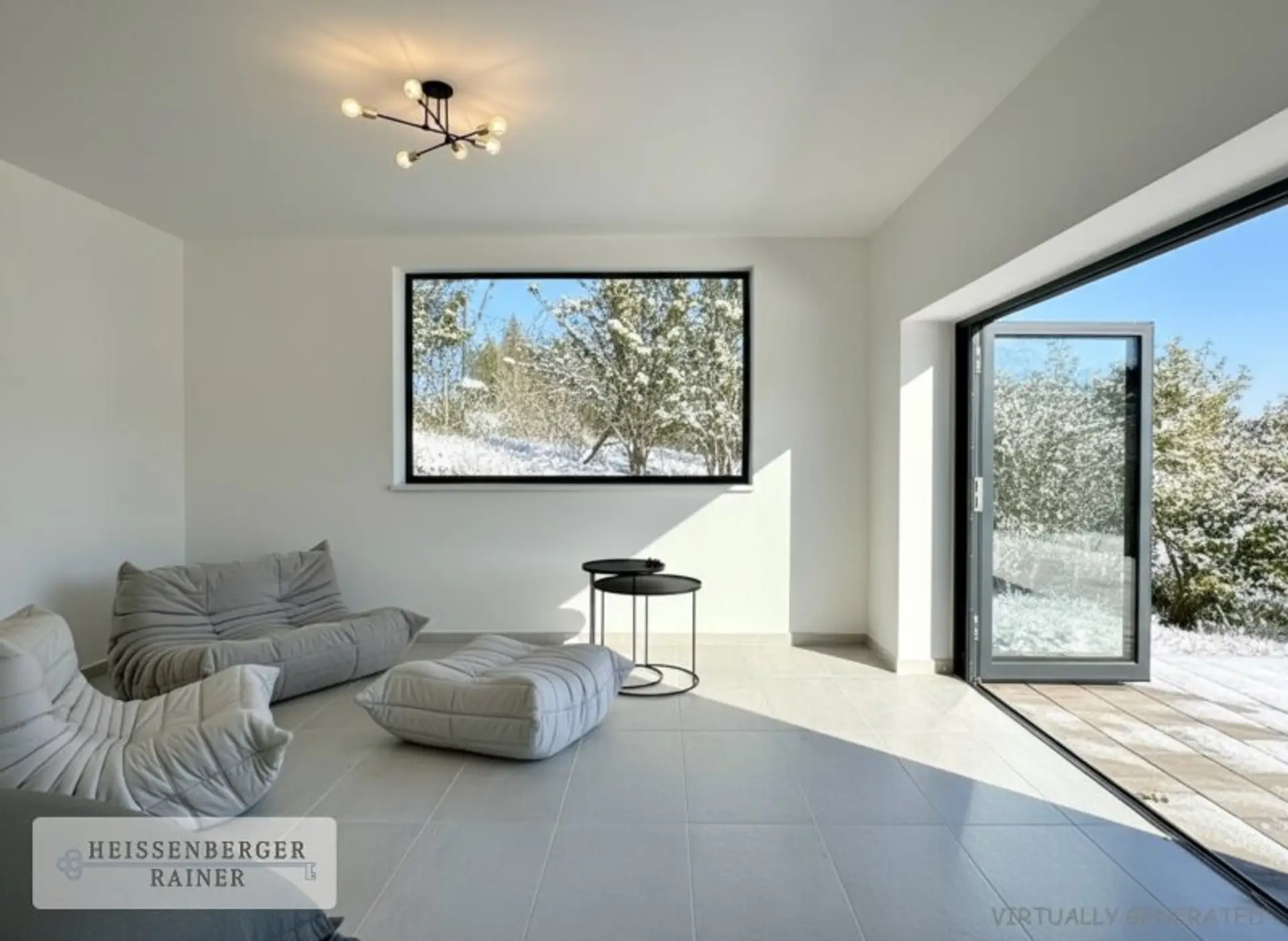 Am Ende einer Sackgasse - diskret und elegant inmitten herrlicher Natur gelegen - eröffnet sich ein Designhighlight, das auf leichte, ungezwungene und perfekt harmonische Weise den Sommer im Wienerwald neu und zeitgemäß interpretiert. Alle Räume bieten traumhafte Ausblicke über den Garten, den Pool und die Wiesen und Wälder der Umgebung - von Sonnenaufgang bis Sonnenuntergang lässt sich dieser wirklich besondere Rückzugsort entspannt genießen!