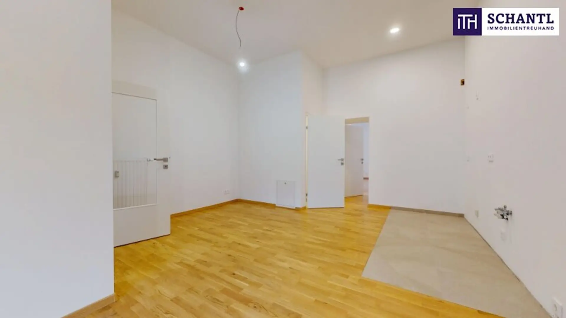3,32 Meter Raumhöhe, integrierte LED‑Beleuchtung, ein neu verlegter Parkettboden, der warm und einladend wirkt. Die abgehängte Decke verleiht dem klassischen Altbau eine moderne Eleganz, ohne den historischen Charme zu verlieren.