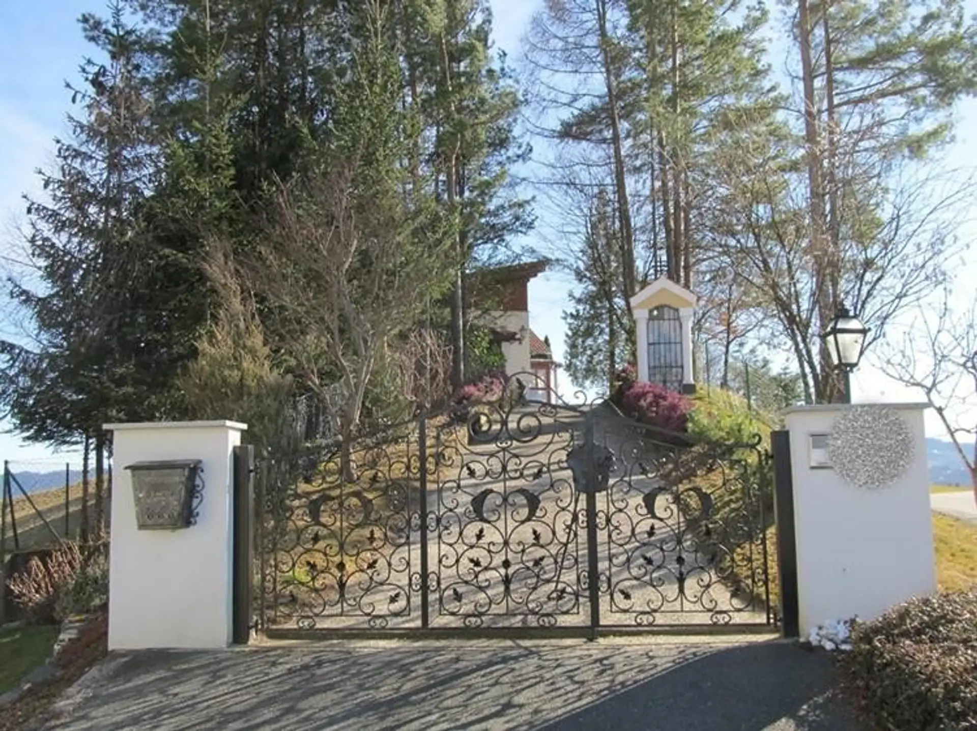 Vom Vorplatz erreicht man sowohl über eine Stiege als auch über einen Treppenlift den Hauseingang. Über ein schmiedeeisernes Tor gelangt man über die Auffahrt direkt zum Haus, das von üppigem Baumbestand umgeben ist und dadurch ein hohes Maß an Privatsphäre bietet.