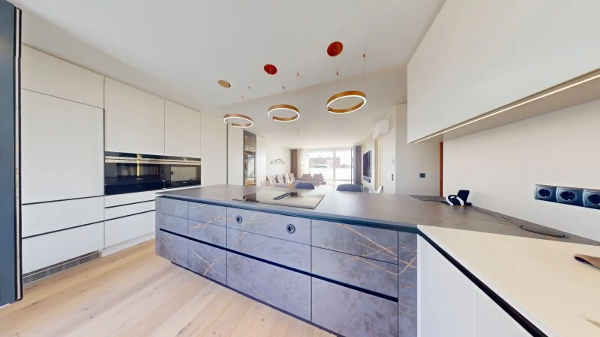 Wohlempfinden und Luxus - Absolut neuwertige Wohnung in neuem, hochwertigem Haus, die voll möbliert wie liegt und steht übergeben wird. Es wurden beste Materialien, Einrichtung und Geräte verwendet, die sich durch Wohnkomfort und Langlebigkeit auszeichnen. Eichenparkett in den Wohnräumen, Steinzeug in den Sanitärräumen. Angenehme Fußbodenheizung über Fernwärme und Klimatisierung der gesamten Wohnung über DAIKIN Style-Geräte garantieren angenehmes Raumklima über das gesamte Jahr. Außenliegende elektrische Raffstores zur Beschattung in allen Räumen. Die Wohnung ist äußerst geschmackvoll mit hochwertigen Designermöbeln ausgestattet, bietet sehr viel Stauraum und verfügt über eine Vielzahl von Extras, wie ein Geberit Acquaclean WC, eine Regendusche, elektrische Fensteröffnung im Bad und Wirtschaftsraum, Ambientebeleuchtung in der ganzen Wohnung, Ethanolkamin, großen Safe und einen Jacuzzi auf der Terrasse. Zu der Wohnung gehört ein grosszügiges Kellerabteil mit c. 10 qm. Es fehlt also wirklich an nichts.
