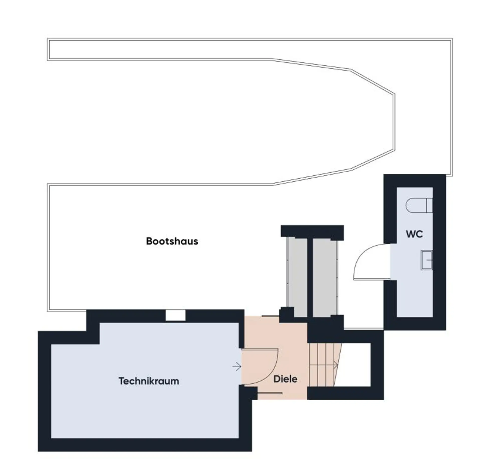 Das Erdgeschoss setzt diesem Objekt die Krone auf – ein einzigartiger Bar- und Loungebereich direkt am Wasser. Stapelbare Glaswände öffnen den Raum vollständig oder schützen ihn bei Bedarf. Hier sitzen Sie das ganze Jahr über wie in einer privaten Marina – nur näher, privater und exklusiver. Bei Wind, Wetter, Sonnenschein oder lauen Abenden: Dieser Raum ist das Herzstück für jede Bootsfahrt, jeden Sommerabend und jeden Besuch.