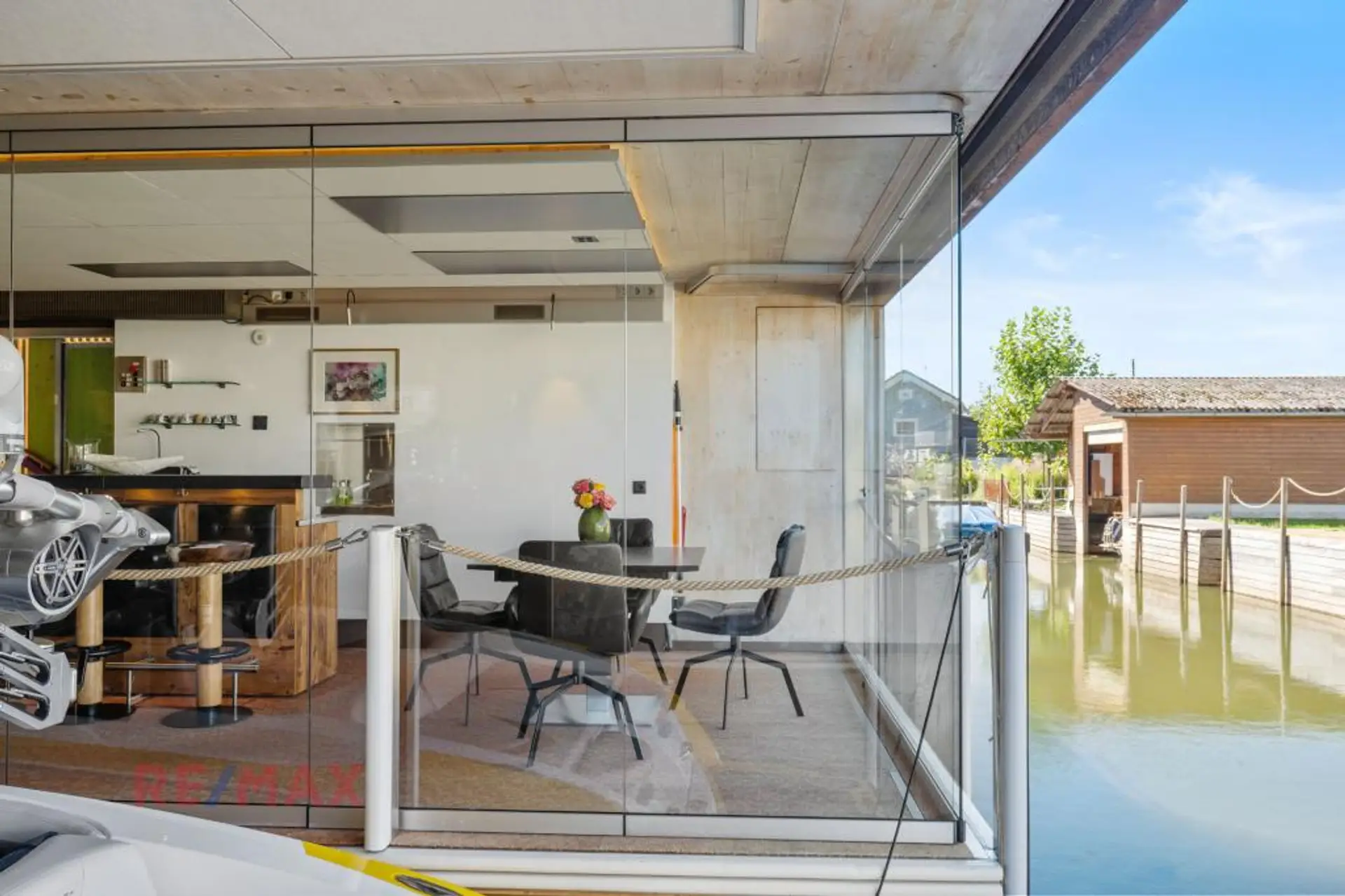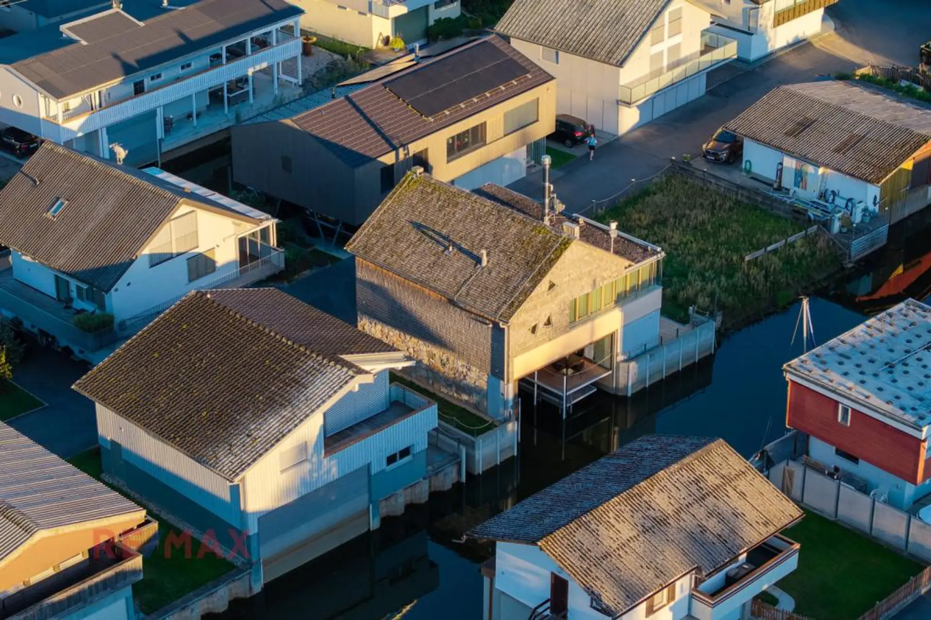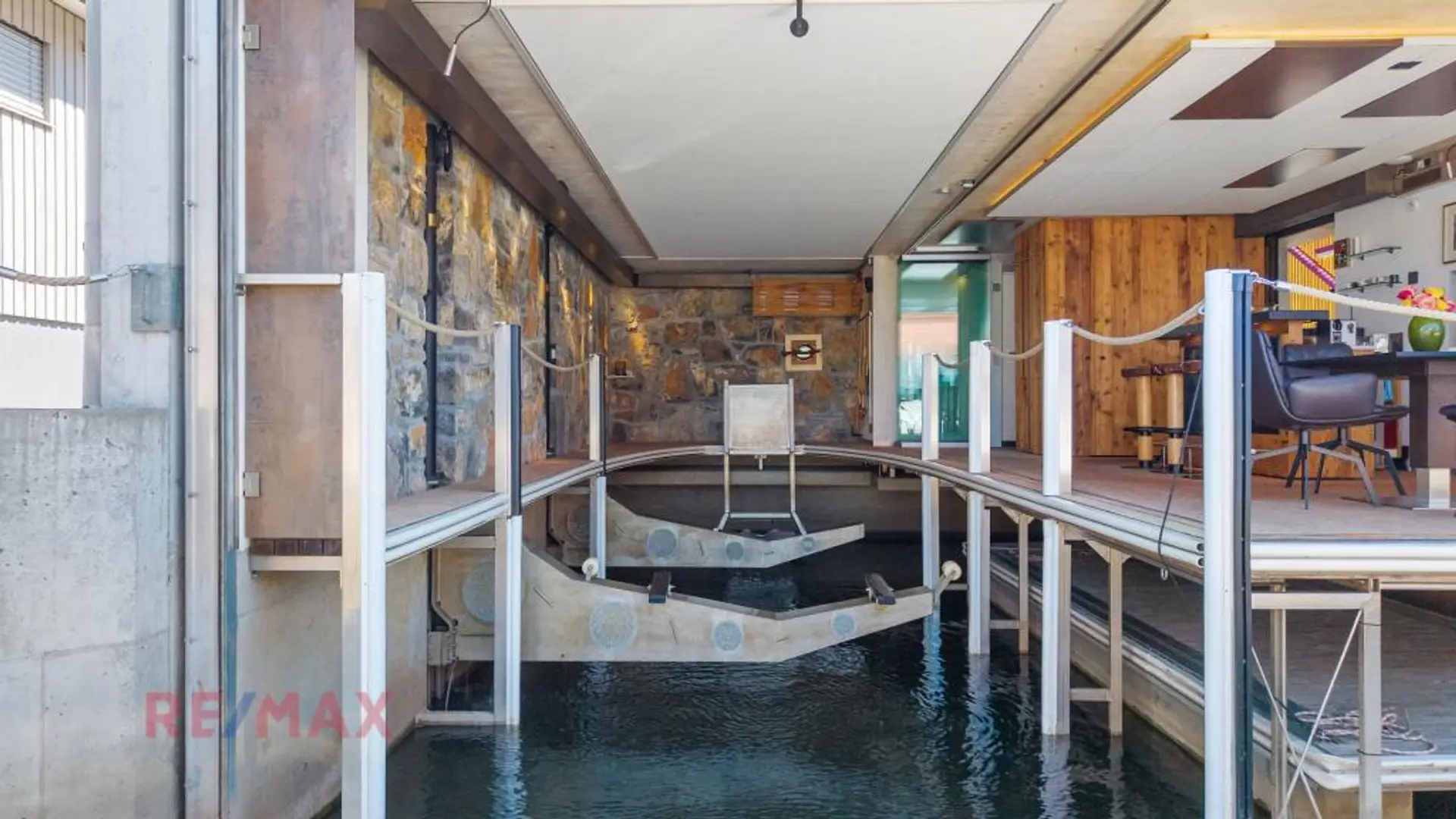 Direkt am breitesten und zugleich tiefsten Seitenkanal gelegen, bietet dieses Objekt eine Perfektion, wie man sie am Bodensee praktisch nicht mehr findet. Die Bootsgarage ist nicht irgendeine Garage – sie ist ein technisches Meisterstück. Der elektrisch-hydraulische Bootslift wurde von Beginn an in die Bausubstanz integriert und trägt bis zu 5,5 Tonnen, TÜV-geprüft. Ihr Boot liegt trocken, geschützt, und immer einsatzbereit – ohne ständige Unterwasserreinigung, ohne jährlichen Anstrich, ohne jegliche Mühe. Rein ins Boot, losfahren – zurückkommen, hochfahren – fertig. Mehr Komfort gibt es nicht. Dieses Bootshaus begeistert nicht nur Bootsfahrer, sondern erfüllt auch höchste Ansprüche an Wohngefühl, Technik und Energieeffizienz. Das massiv gebaute Untergeschoss steht auf einem MESI-Pfahlsystem – eine Bauweise, die Stabilität für Jahrzehnte sicherstellt. Darüber erhebt sich ein offenes, lichtdurchflutetes Wohnhaus, dessen durchdachtes Energiekonzept mit Erdwärmepumpe, Sonnenkollektoren und intelligenter Steuerung bis heute kaum zu übertreffen ist. Selbst an heißen Sommertagen bleiben die Räume spürbar angenehm – ganz ohne teure Kälteerzeugung, nur mit cleverer Technik und Grundwasser.