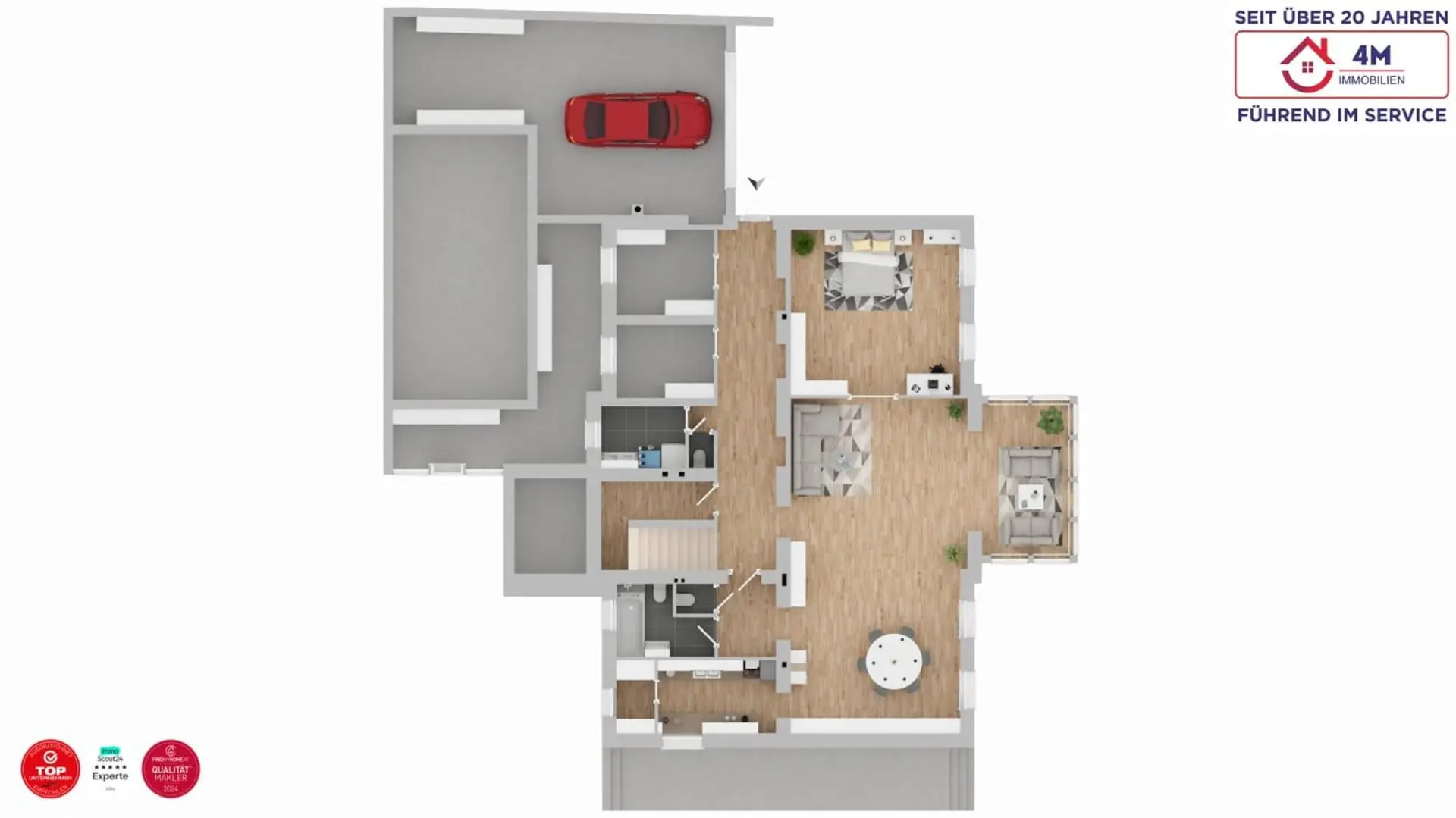 Mit einer Wohnfläche von insgesamt 343 m², verteilt auf drei Ebenen, bietet dieses Haus vielseitige Nutzungsmöglichkeiten – vom Mehrgenerationenwohnen bis hin zu Wohnen und Arbeiten unter einem Dach!