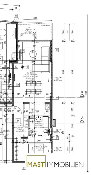 Direkt nach Eintritt in die Wohnung, finden Sie zu Ihrer rechten Seite eine Nische zum Einbau eines Garderobenschranks. Die Wohnküche mit rund 28 m² bietet ausreichend Platz für Sie und Ihre Familie. Die 3,60 m langen Fenster bieten Ihnen eine uneingeschränkten Blick aufs Meer! Vom Wohnzimmer gelangen Sie auf die Terrasse und in den Garten. Vom Gang aus ist ein Badezimmer begehbar, welches mit einer Dusche, Waschbecken und einer Toilette ausgestattet ist. Außerdem gelangen Sie vom Gang in die zwei Schlafzimmer, eines davon mit eigenem Badezimmer mit Toilette und Dusche. Die Schlafzimmer werden mit hochwertigen Parkettböden ausgestattet. Die restlichen Räume werden verfliest. Der Wohnung ist ein überdachter Parkplatz zugeordnet.