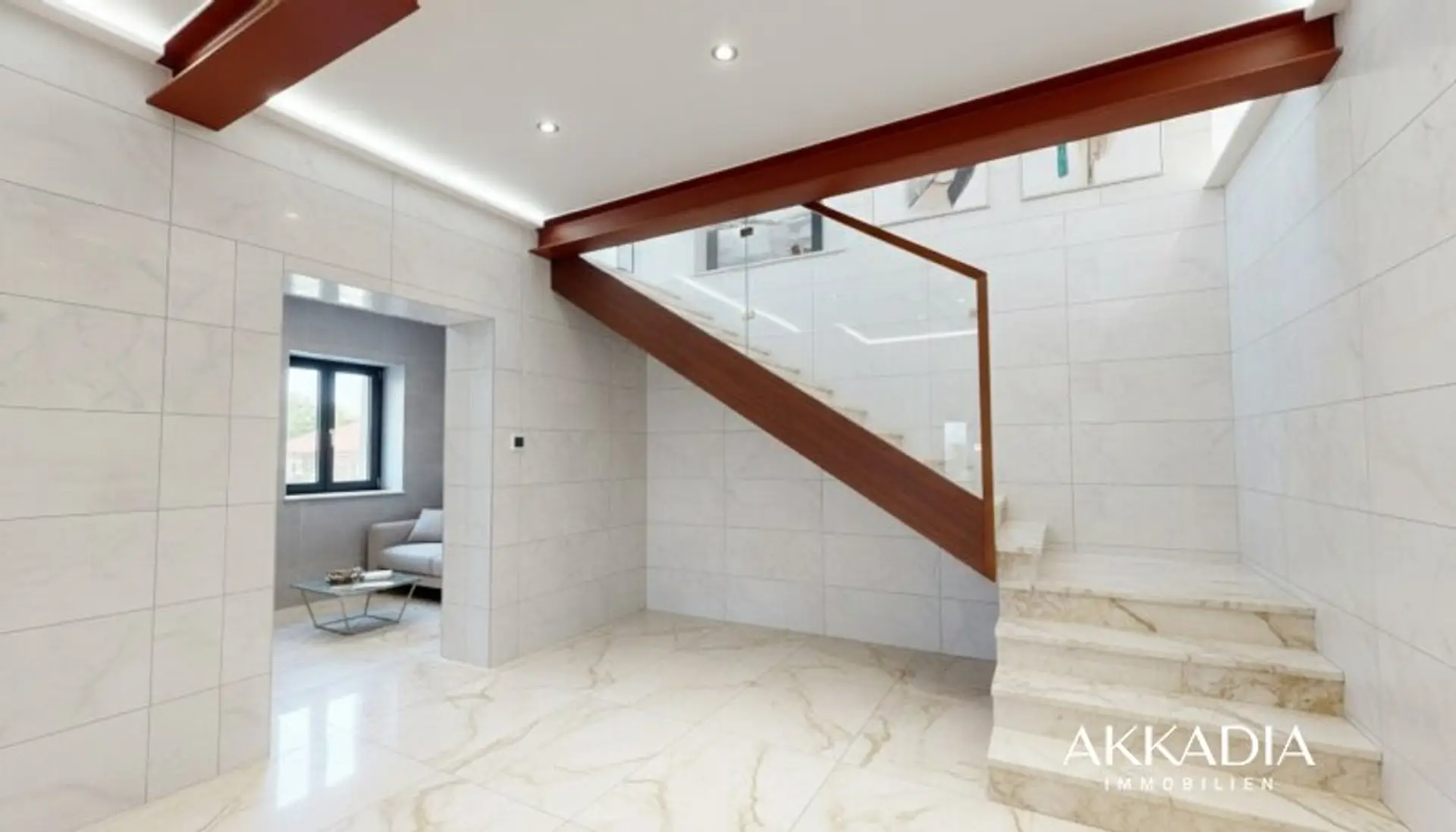Das Grundstück umfasst rund 249 Quadratmeter, die gesamte Wohnnutzfläche beträgt etwa 266 Quadratmeter. Haus 1 bietet ca. 168 Quadratmeter Wohnfläche, Haus 2 rund 98 Quadratmeter. Beide Einheiten überzeugen durch großzügige Grundrisse und helle, lichtdurchflutete Räume.