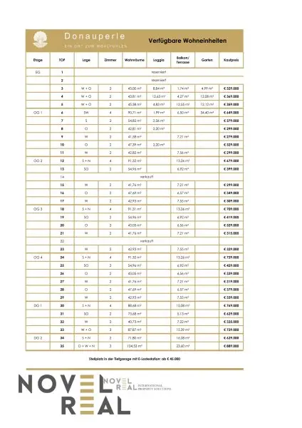 Die Aufstellung der verfügbaren Wohneinheiten samt Kaufpreisen finden Sie auch in entsprechenden pdf-Datei.