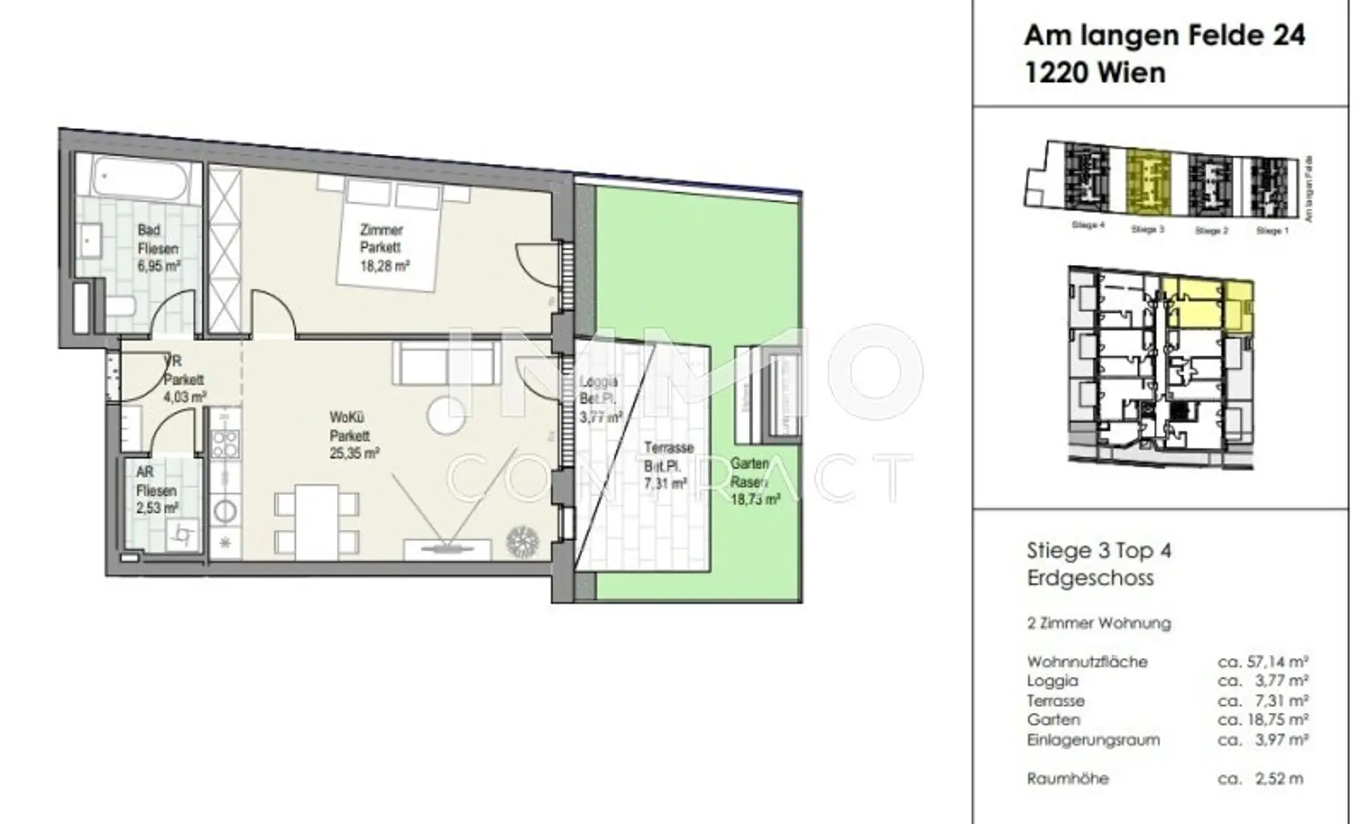 Jede Wohnung verfügt über eine private Freifläche – sei es Garten, Balkon, Loggia oder Terrasse – und bietet durchdachte Grundrisse sowie hochwertige Ausstattung: Echtholzparkett, moderne Fliesen, eine voll ausgestattete Einbauküche und ein stilvoll ausgestattetes Badezimmer sind bereits im Kaufpreis enthalten.