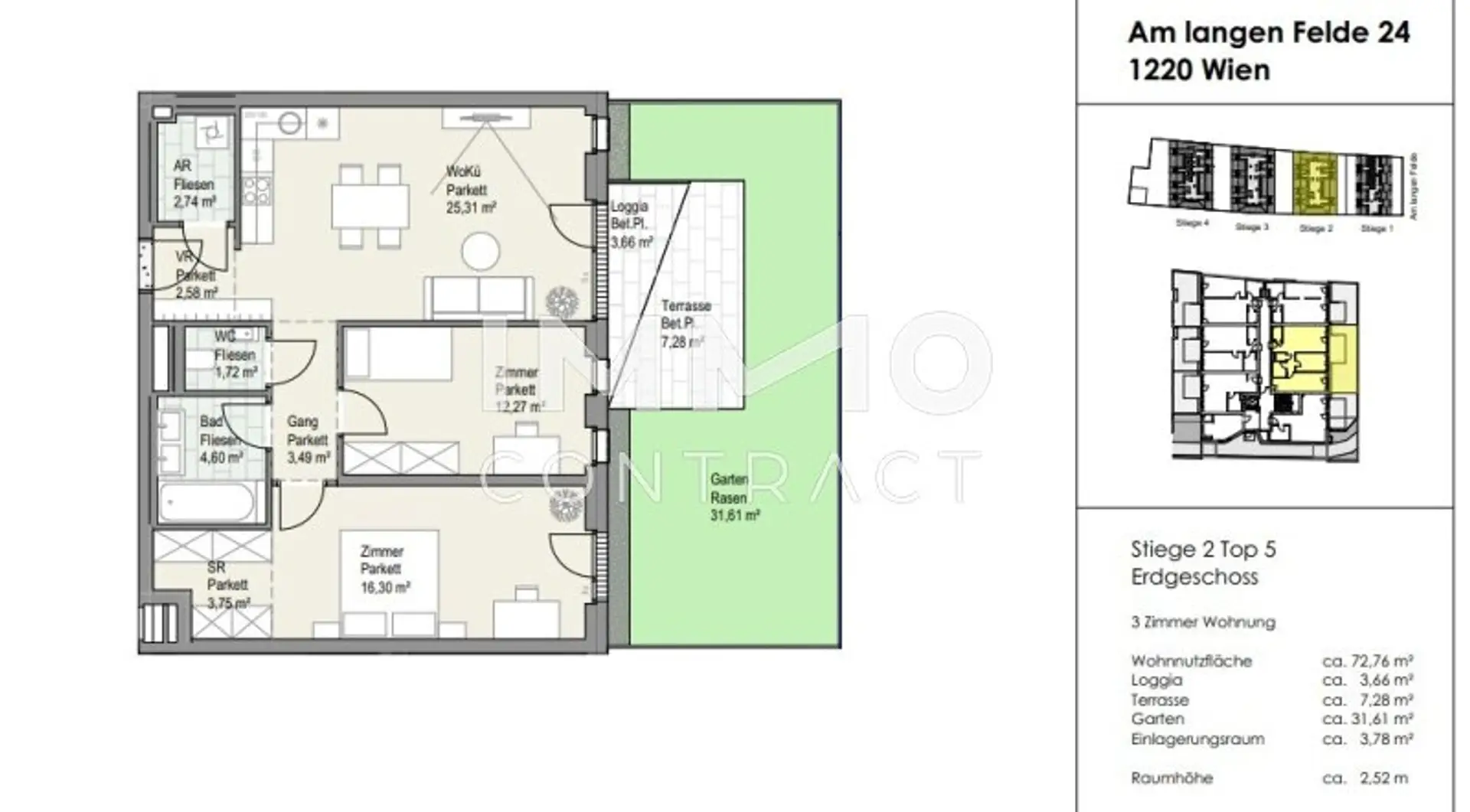 Jede Wohnung verfügt über eine private Freifläche – sei es Garten, Balkon, Loggia oder Terrasse – und bietet durchdachte Grundrisse sowie hochwertige Ausstattung: Echtholzparkett, moderne Fliesen, eine voll ausgestattete Einbauküche und ein stilvoll ausgestattetes Badezimmer sind bereits im Kaufpreis enthalten.
