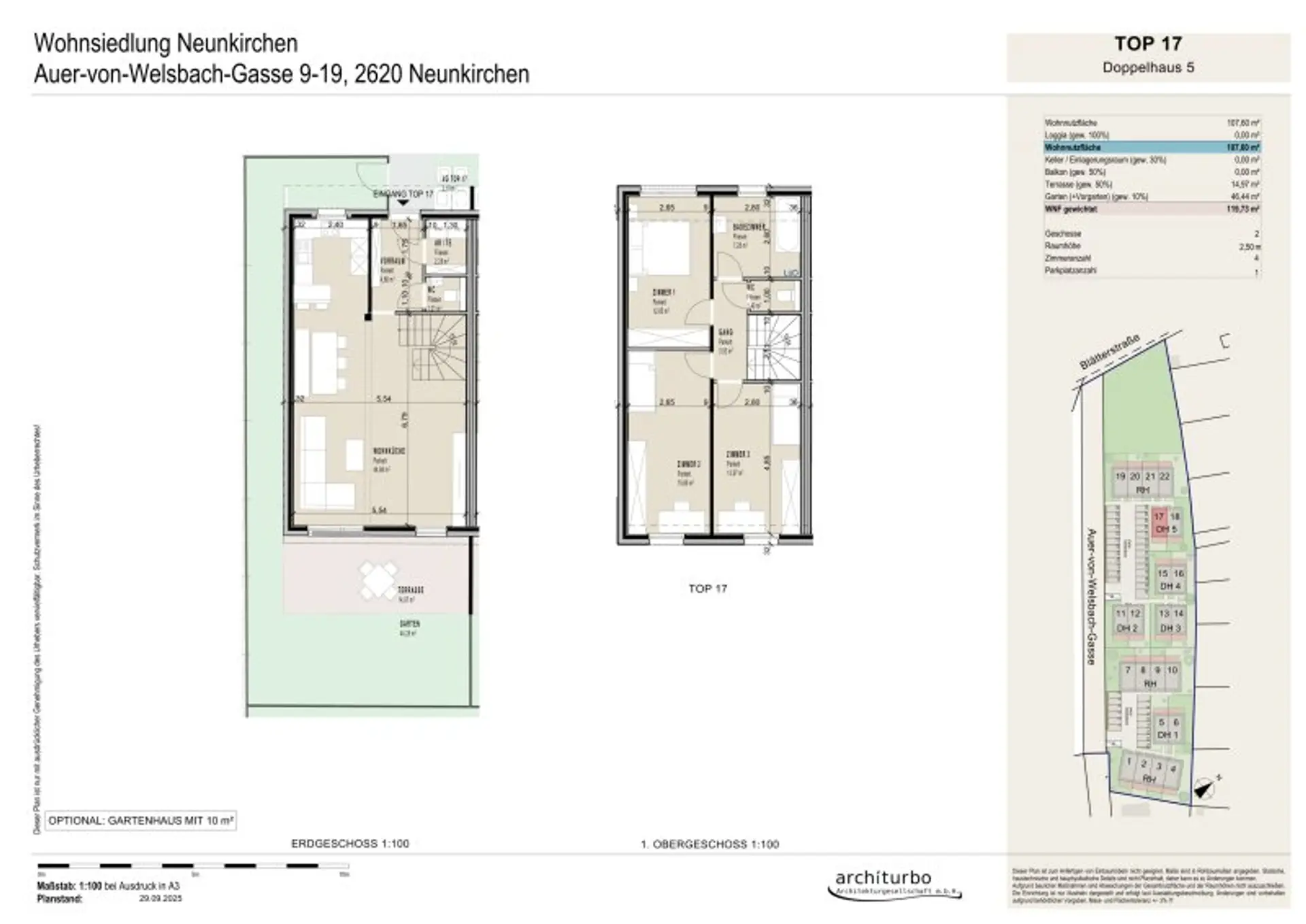 Das Projekt liegt am nördlichen Stadtrand von Neunkirchen mit sehr guter öffentlicher Anbindung. Der Bahnhof Neunkirchen befindet sich ca. 600m entfernt, die nächste Bushaltestation ist in 100m Gehweglänge erreichbar. Auch der nächste Supermarkt ist nur 5 Gehminuten vom Grundstück entfernt.