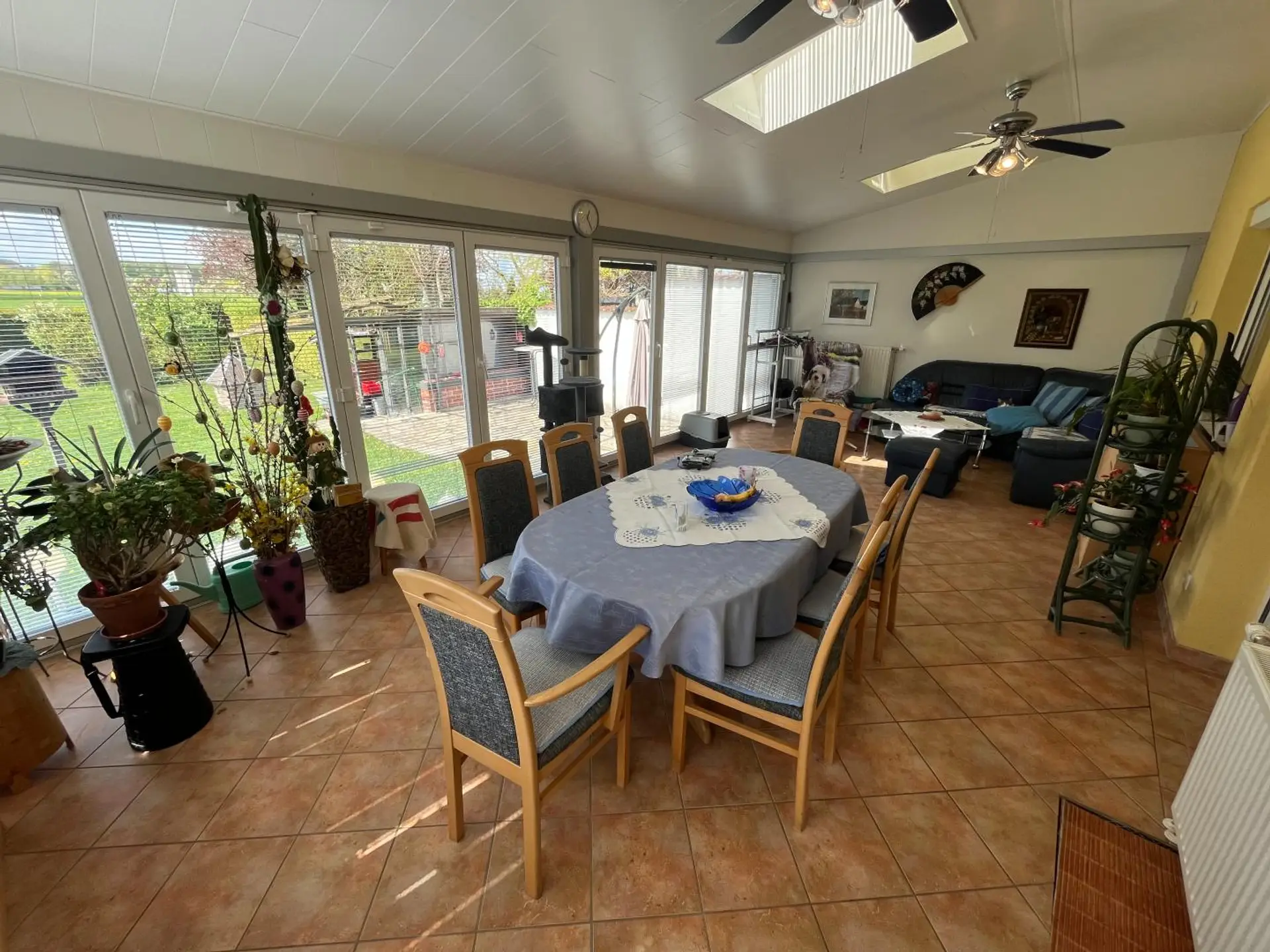 Anschließend gelangt man in den Wohn-Essbereich mit angebauten Wintergarten