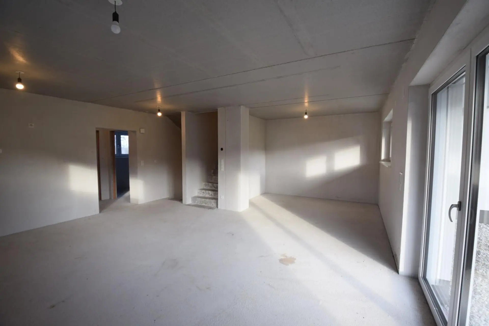 * Erdgeschoß: Diele, Gang, WC, Zimmer, offener Wohn- Essbereich, Terrasse