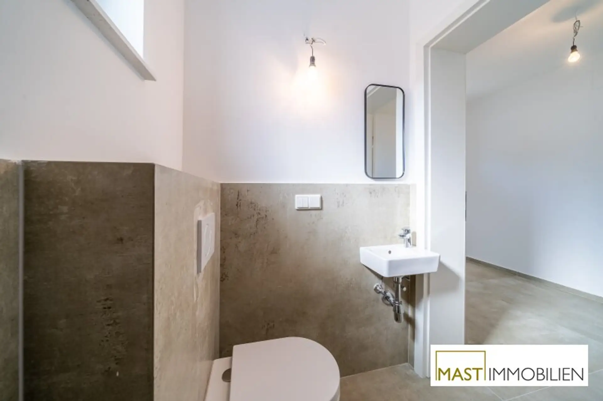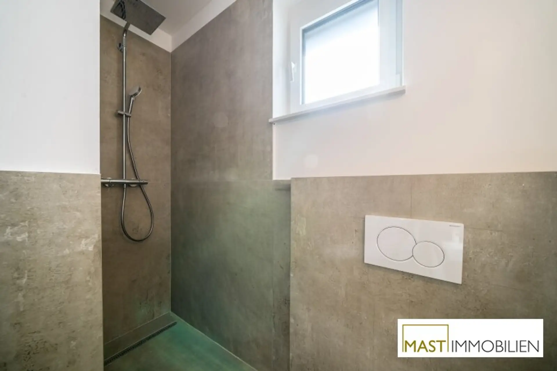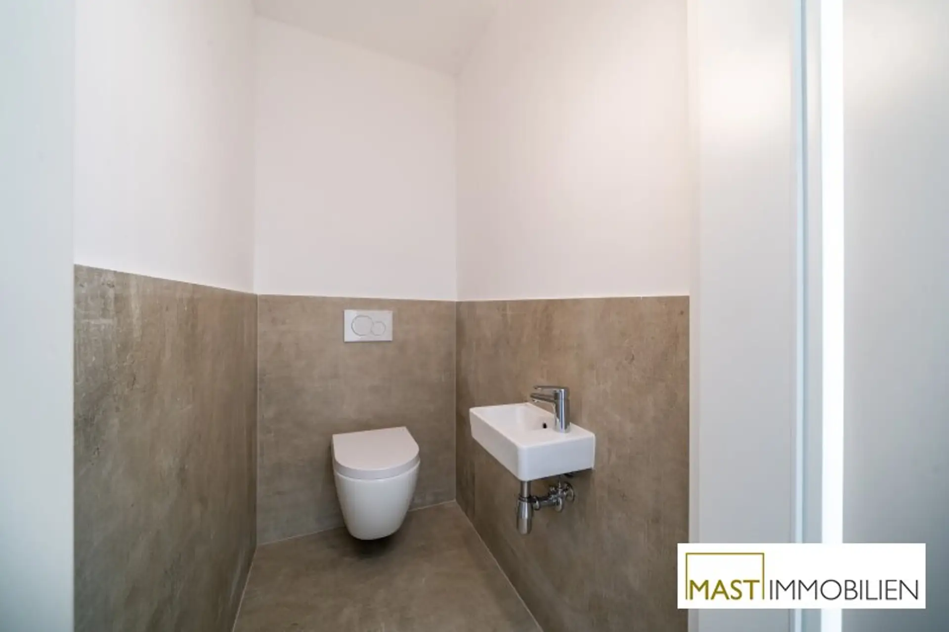 * moderne, großformatige Fliesen in den Sanitärräumen