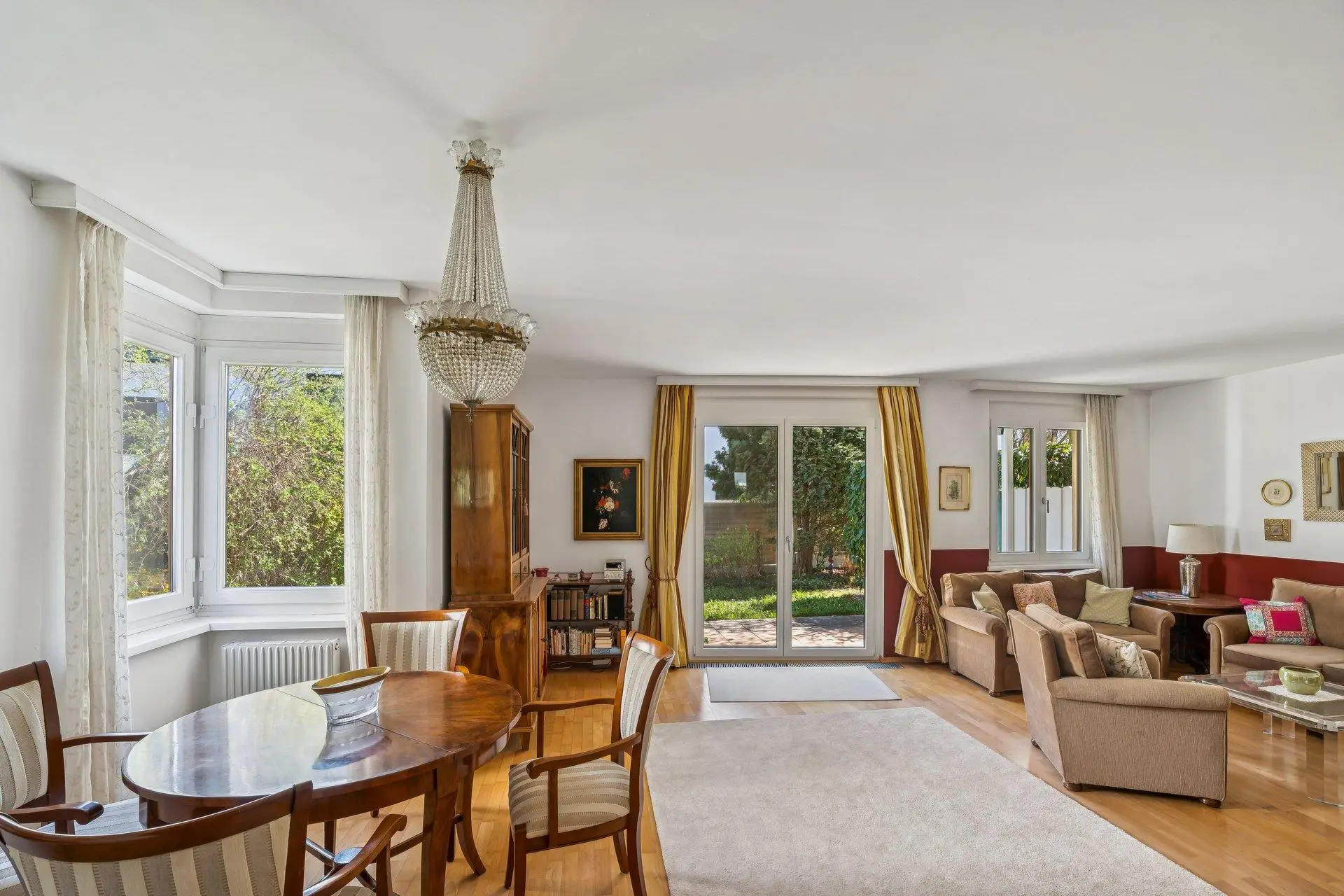 EG: Man betritt das Haus über einen Windfang. Der Vorraum mit viel Platz für Garderobe, öffnet sich zum sonnigen, südostseitigen Wohnzimmer mit Blick auf die Terrasse und den hübschen Garten. Gäste WC befindet sich ebenso auf dieser Ebene.