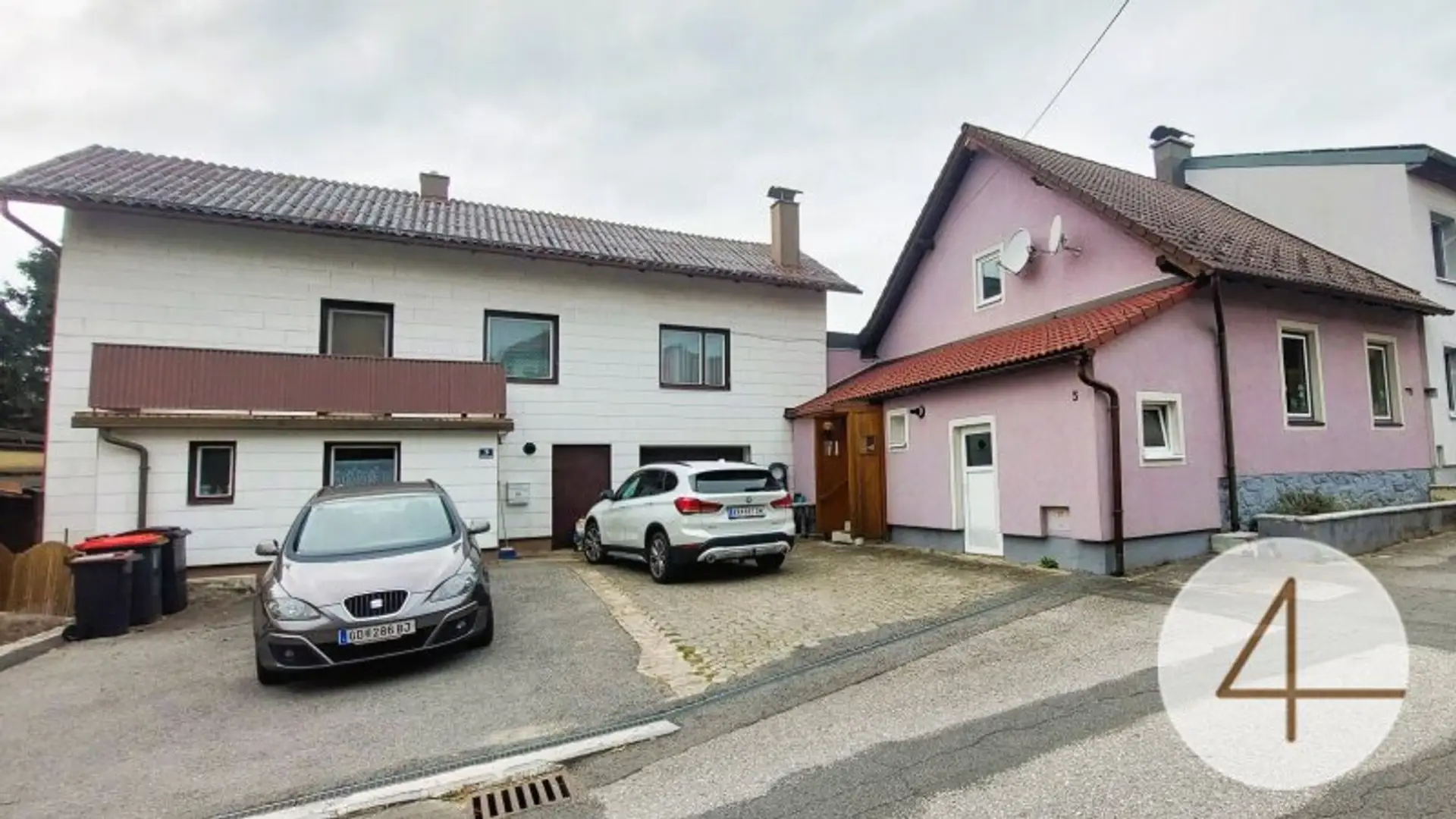 Im ersten Stock gibt es eine weitere Wohneinheit mit Küche und Essplatz, Schlafzimmer, Kinderzimmer, Wohnzimmer, Wintergarten, Bad mit Dusche, Balkon und Vorraum, Aufgang auf den Dachboden;